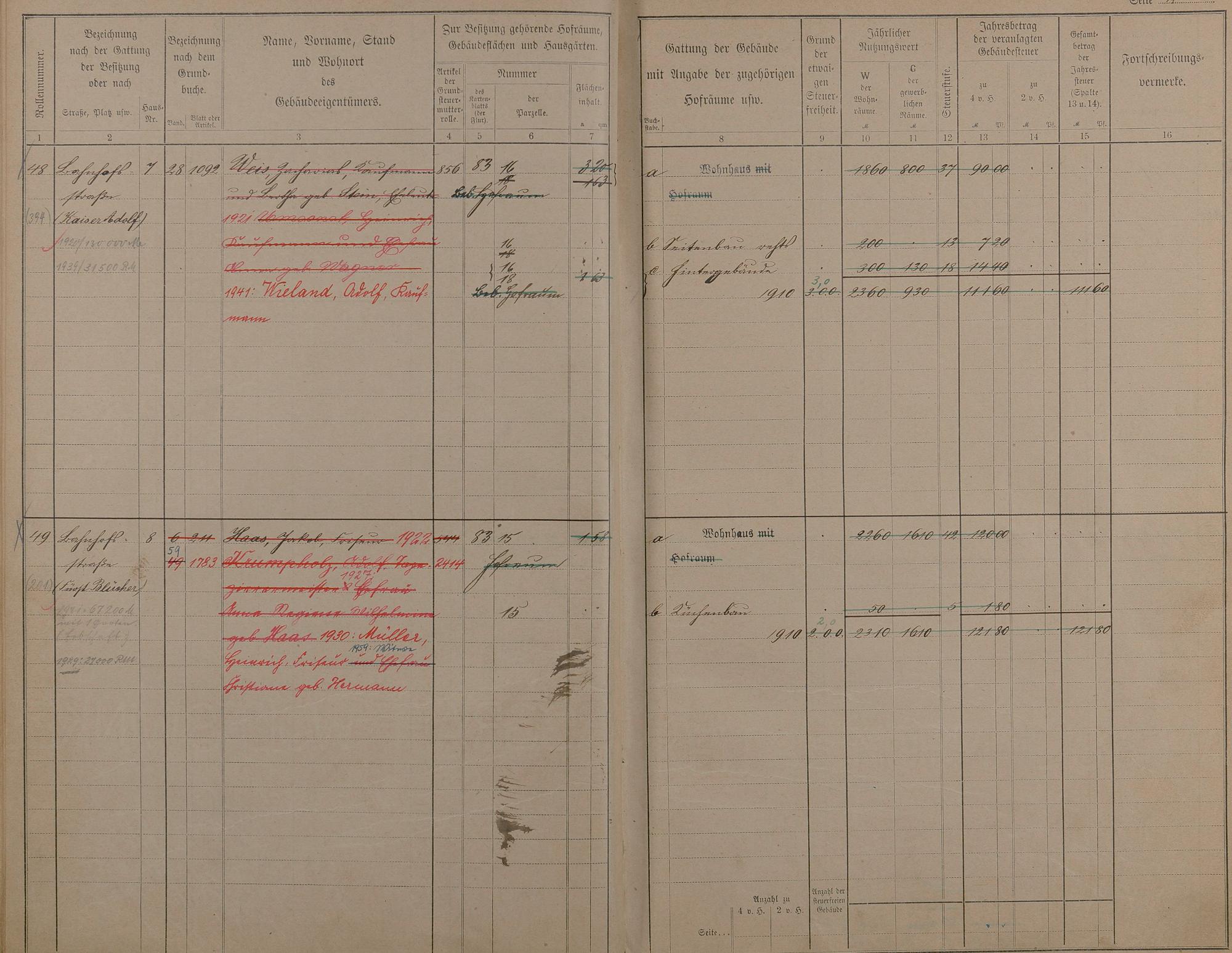 1199: Gebäudebuch des Gemeindebezirks Ems - Virtuelle Zusammenstellung nach Straßen...