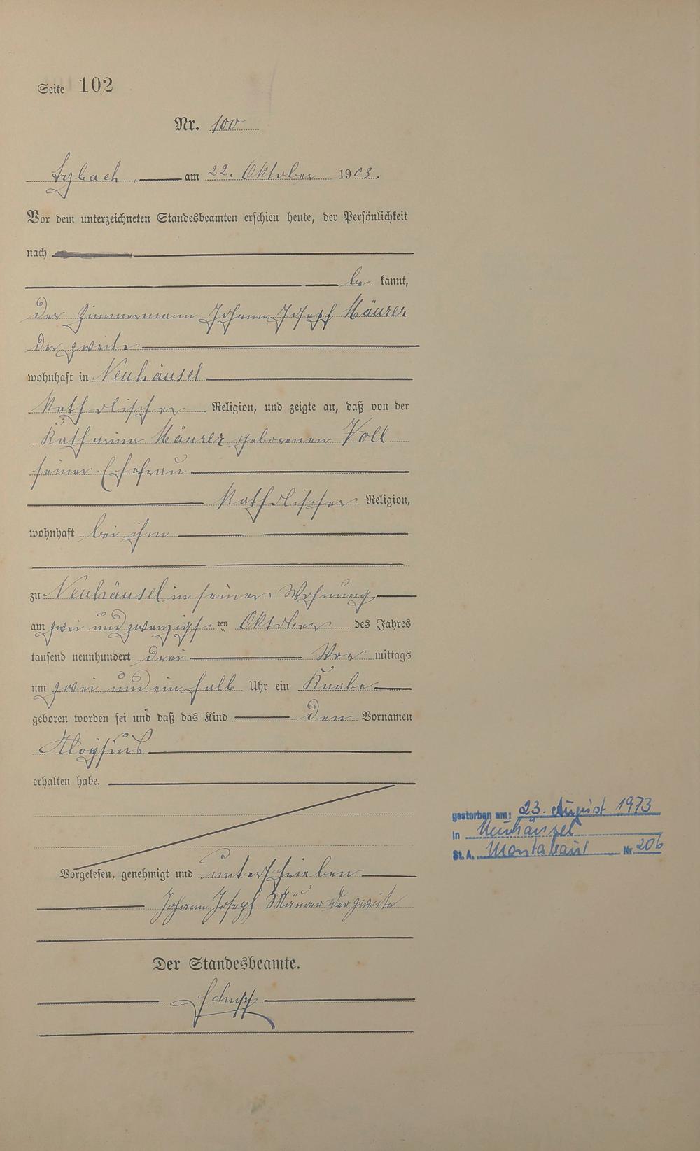 Geburtsregister 1903