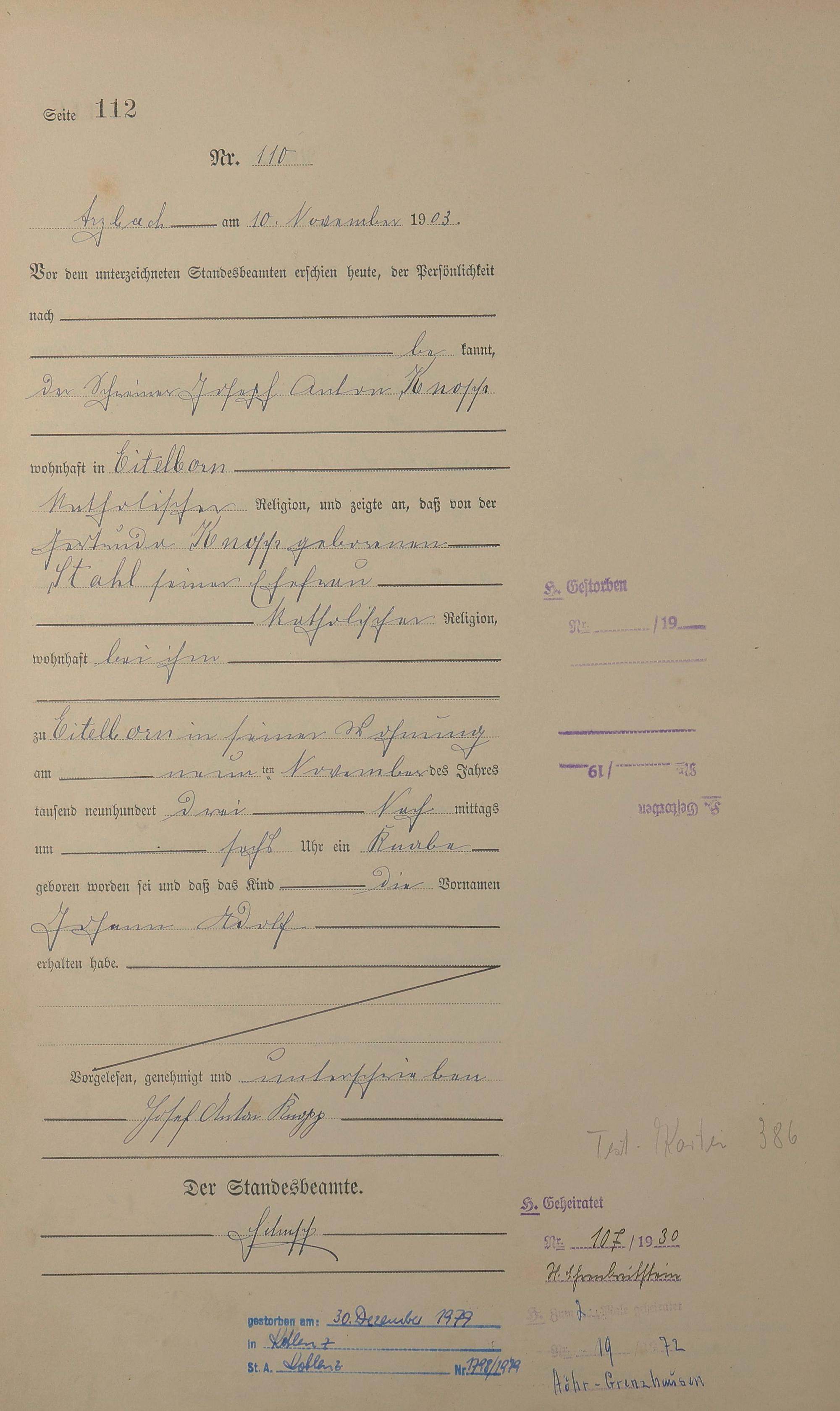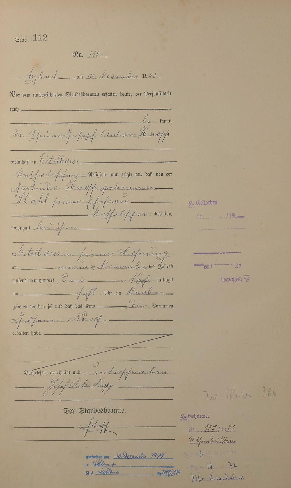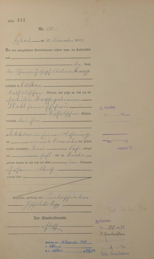 Geburtsregister 1903