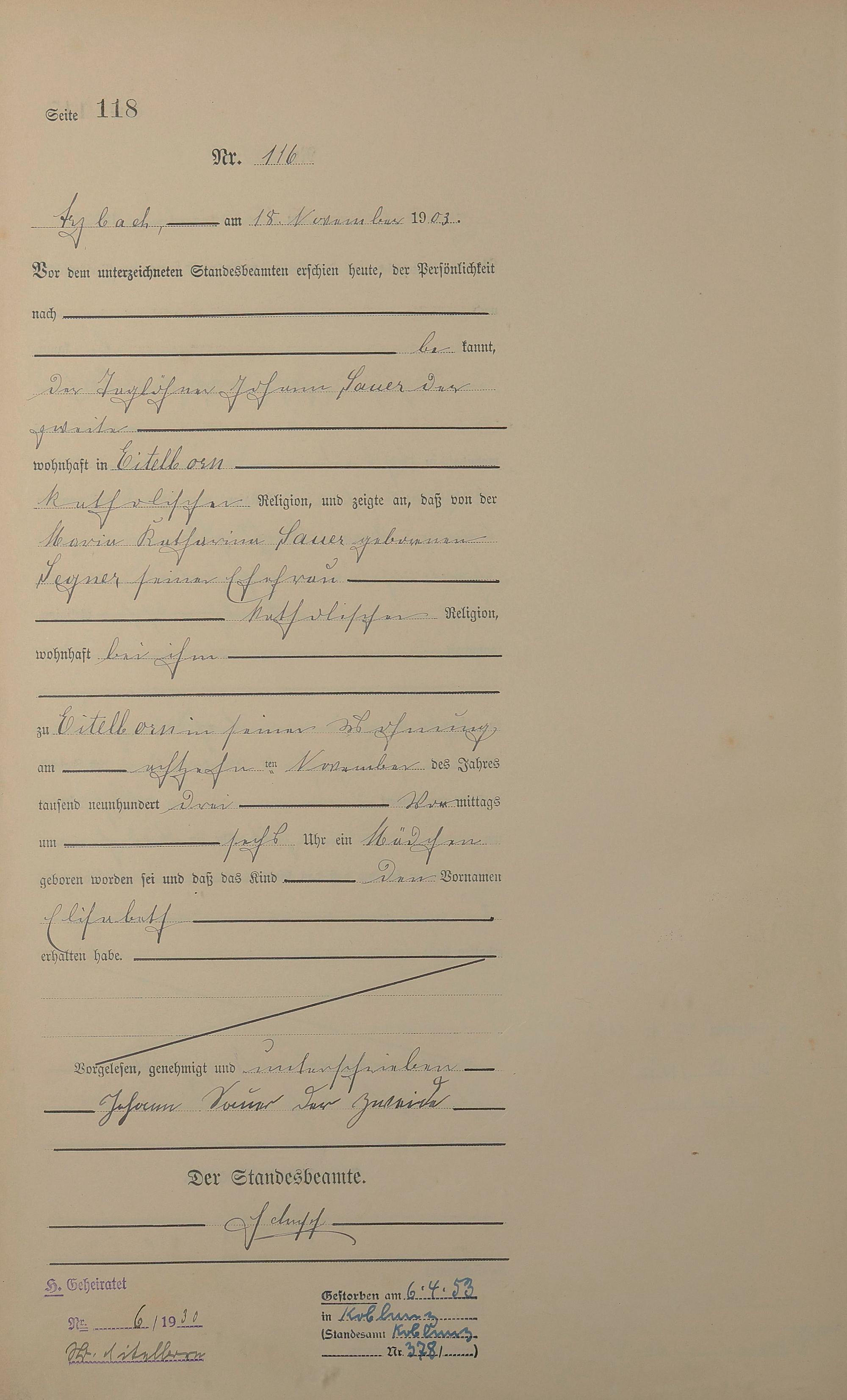 Geburtsregister 1903