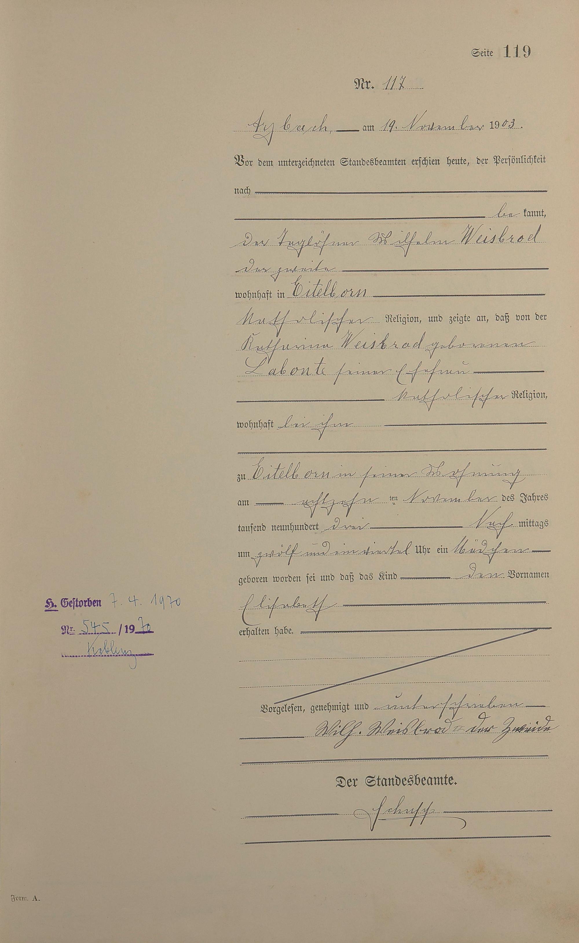 Geburtsregister 1903