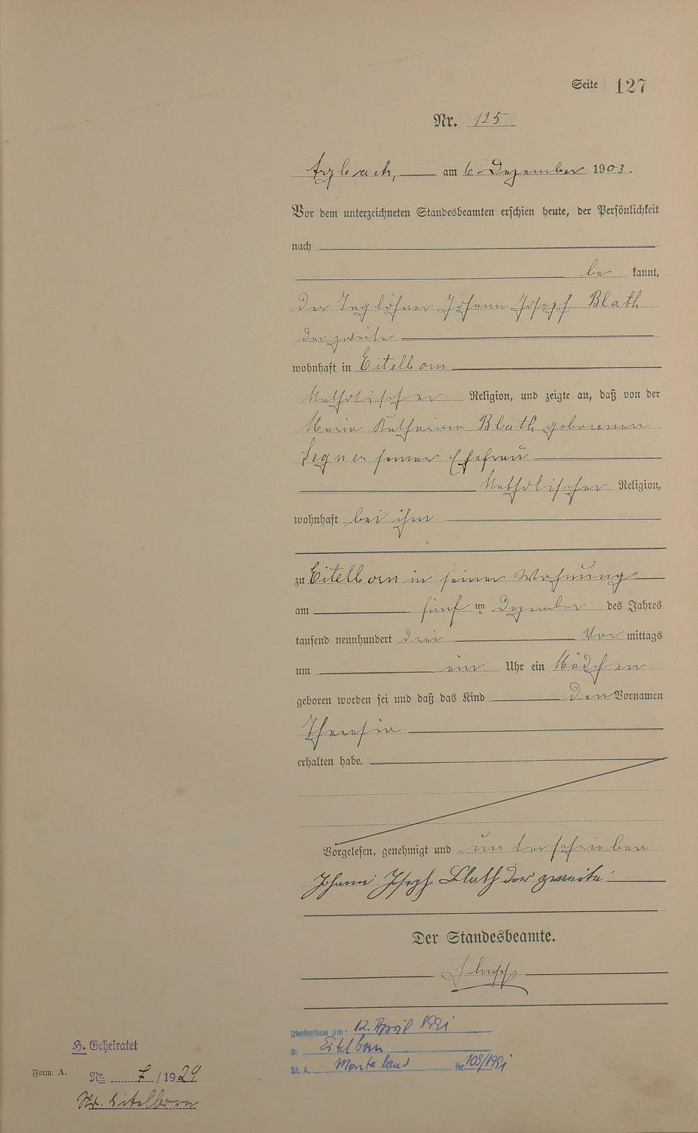 Geburtsregister 1903