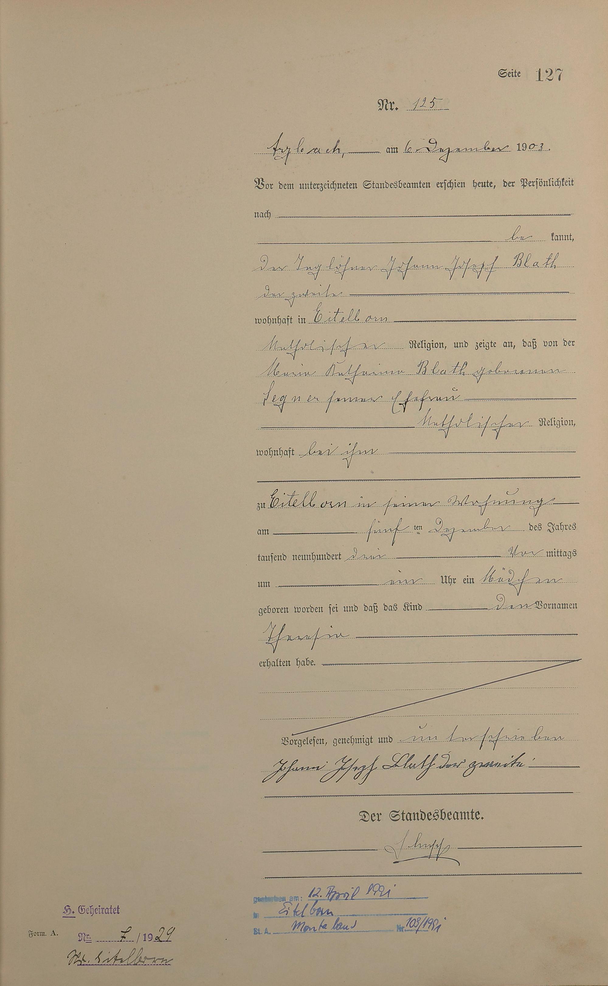 127/1: Geburtsregister 1903