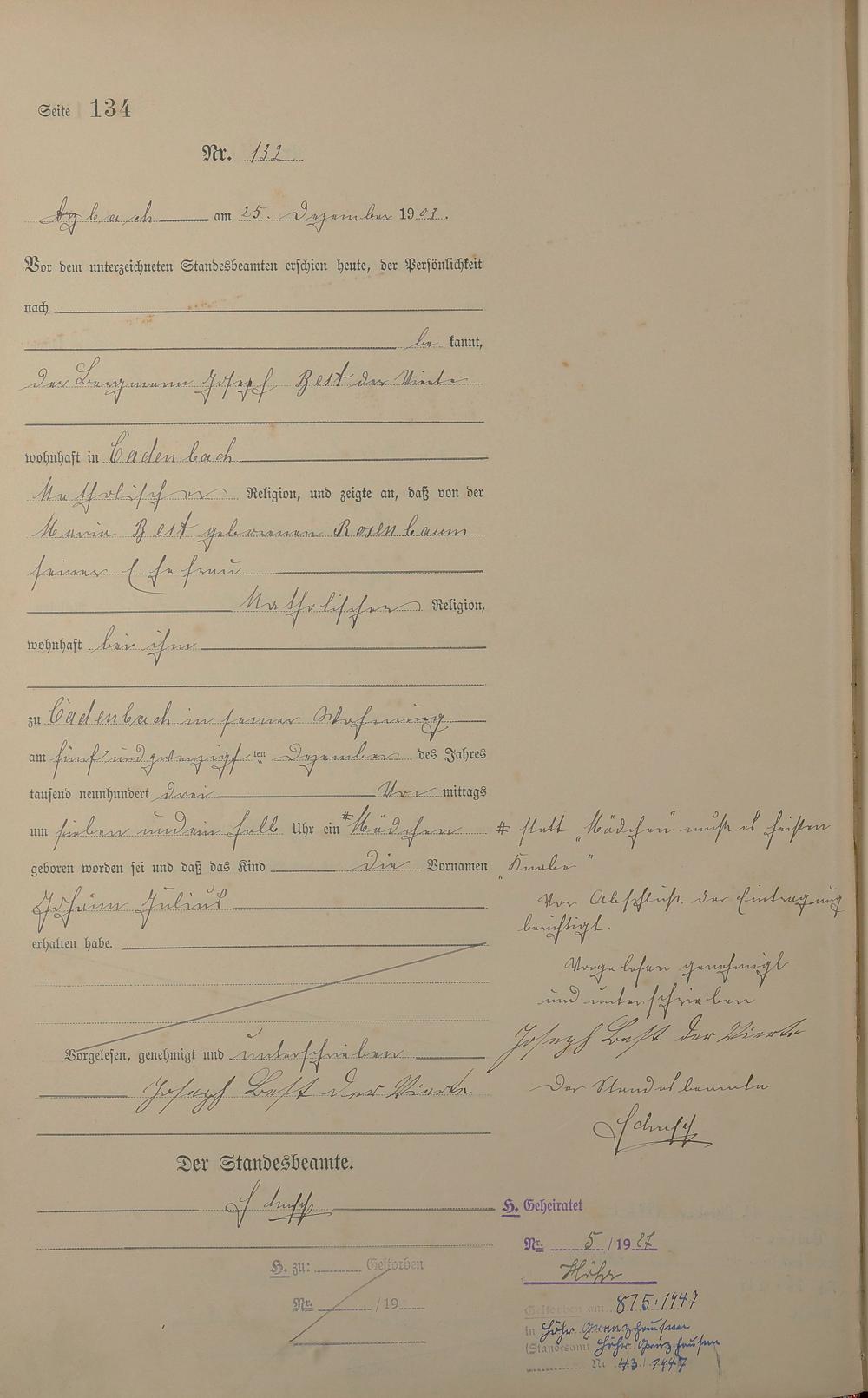 Geburtsregister 1903