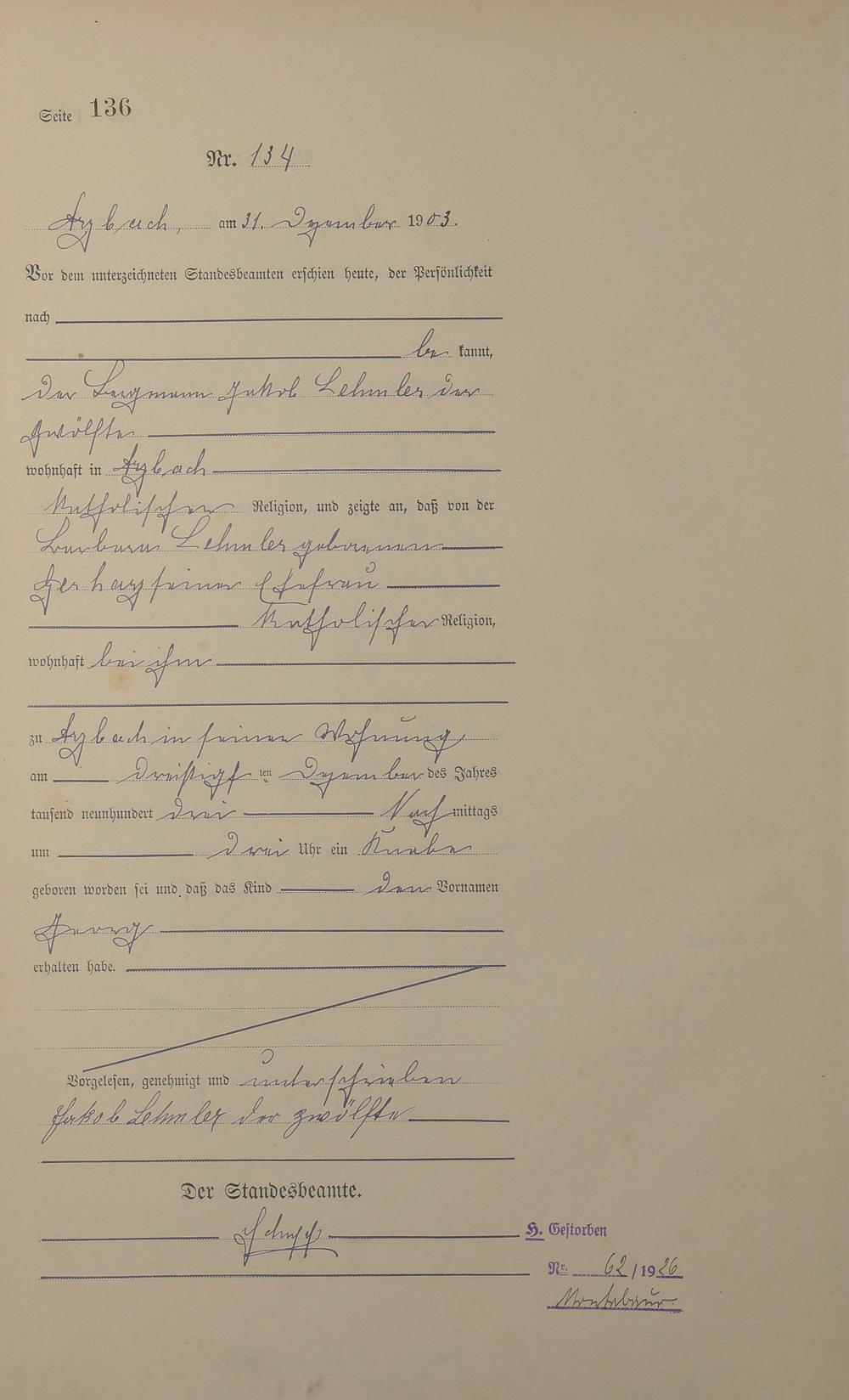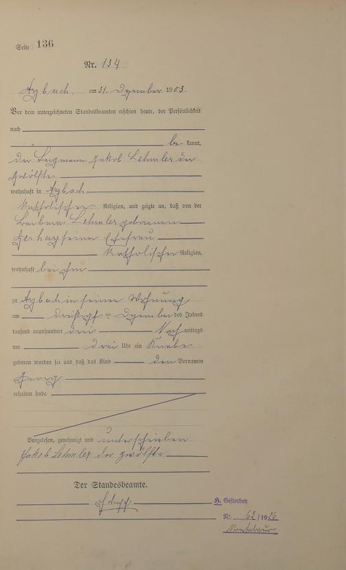 Geburtsregister 1903