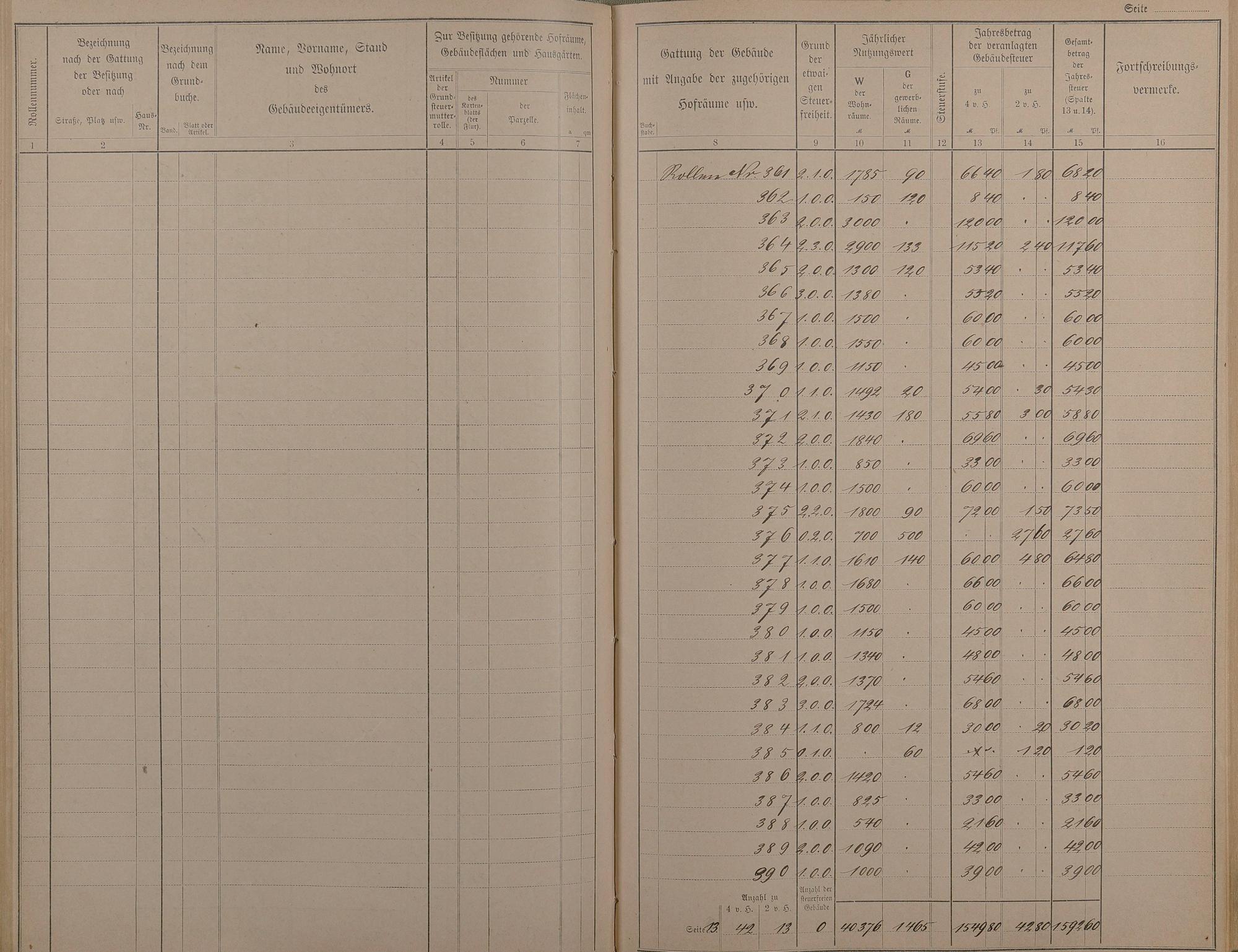 Zusammenfassung der Nutzwerte und Grundsteuerbeträge
