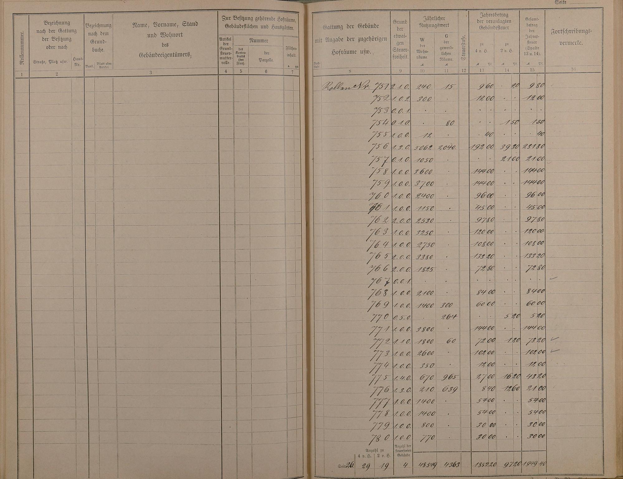 Zusammenfassung der Nutzwerte und Grundsteuerbeträge