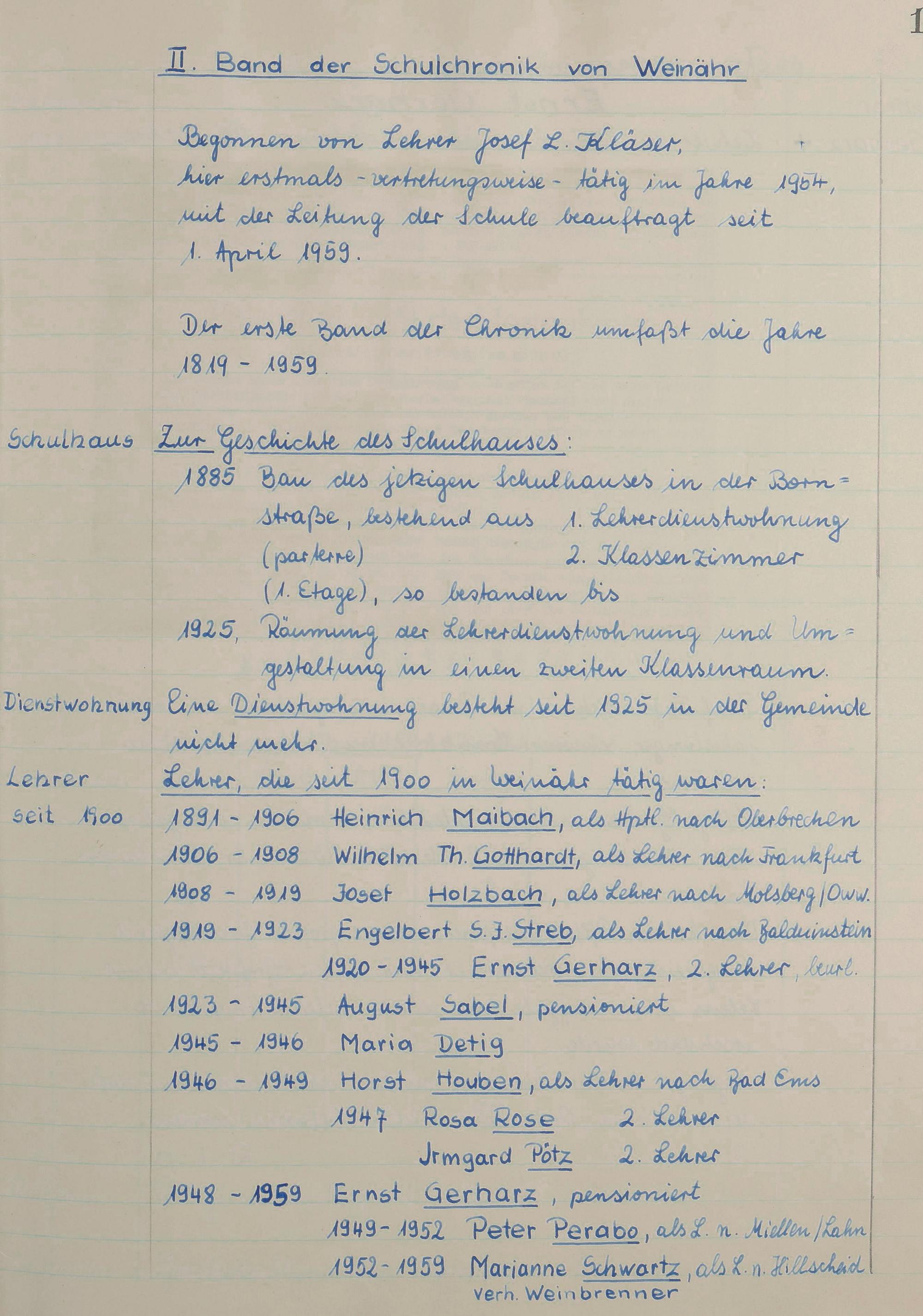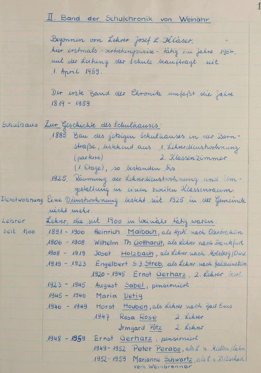 Schulchronik 1959 – 1984