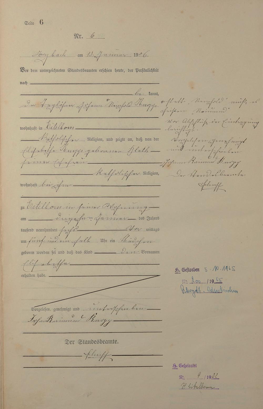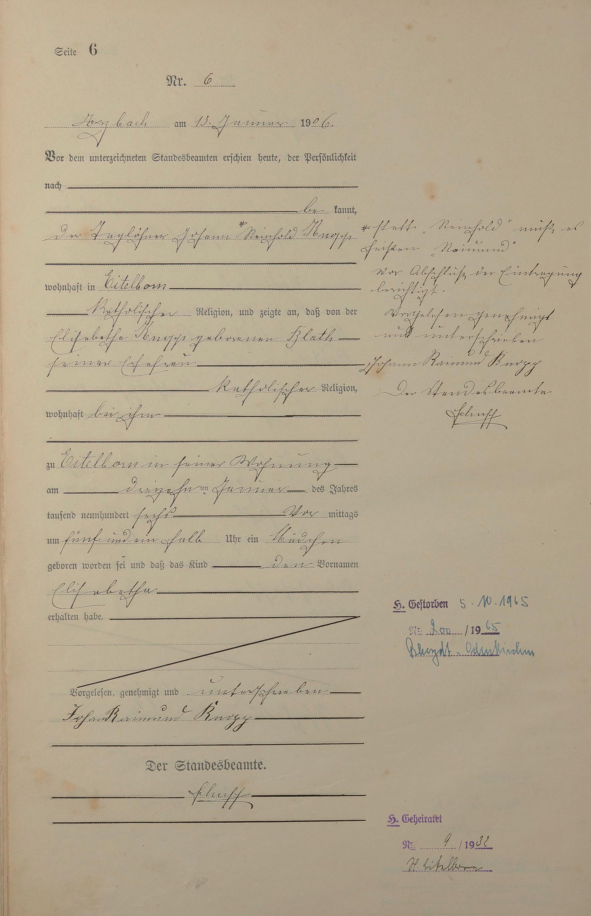 Geburtsregister 1906