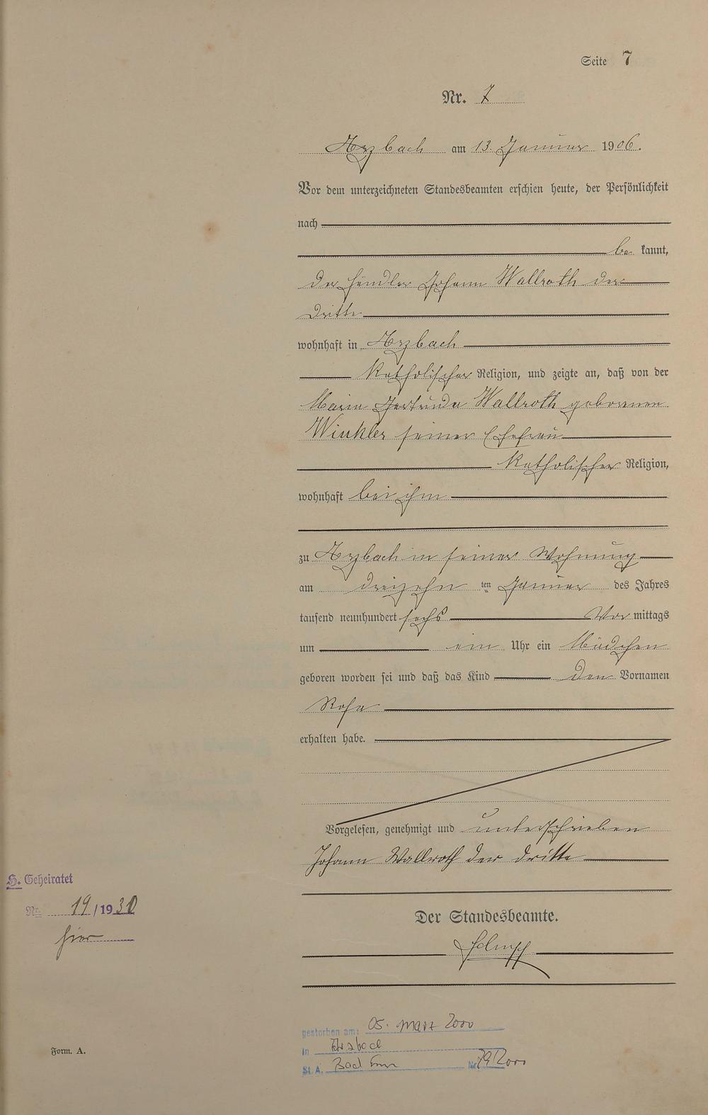 Geburtsregister 1906