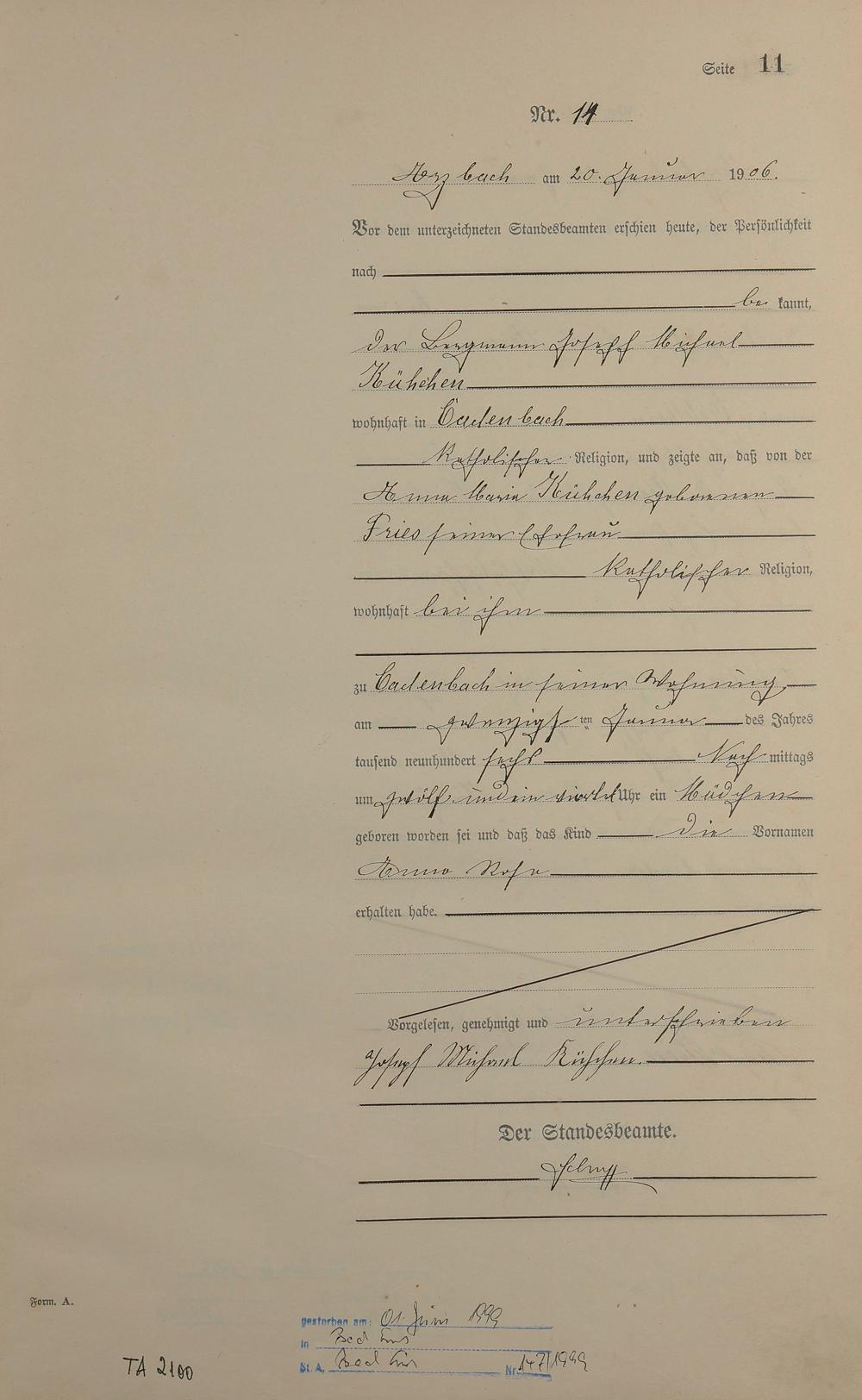 Geburtsregister 1906