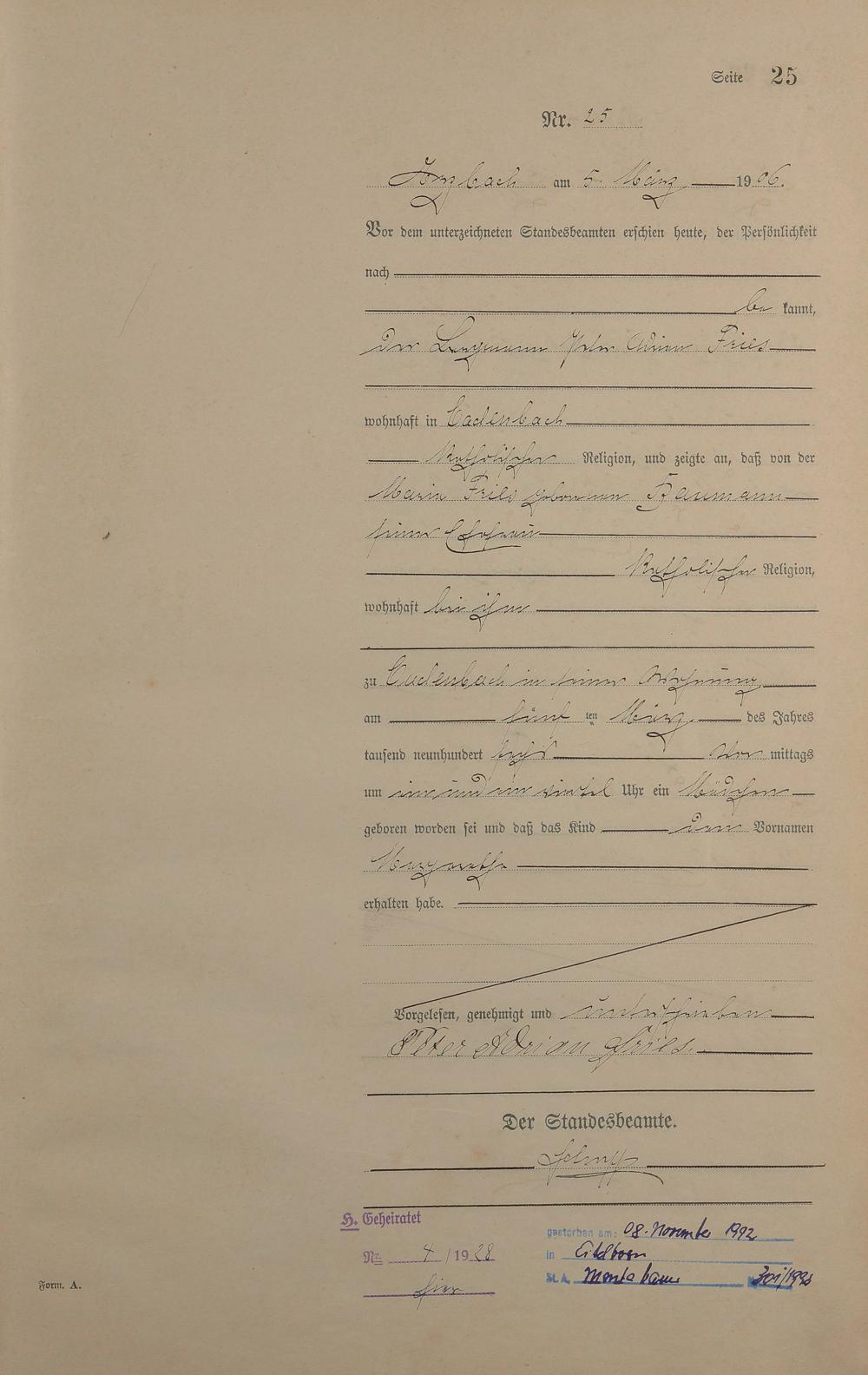 Geburtsregister 1906
