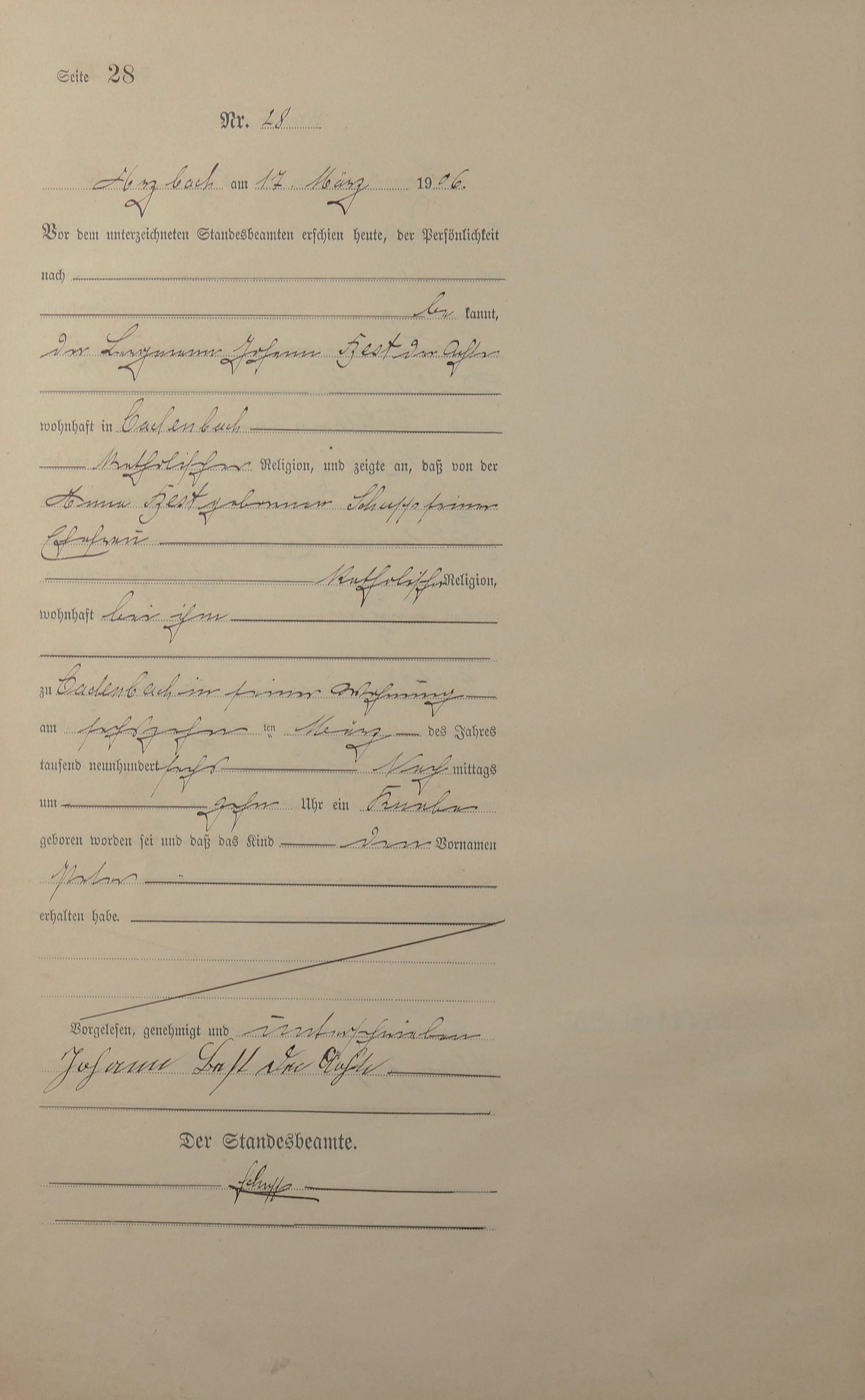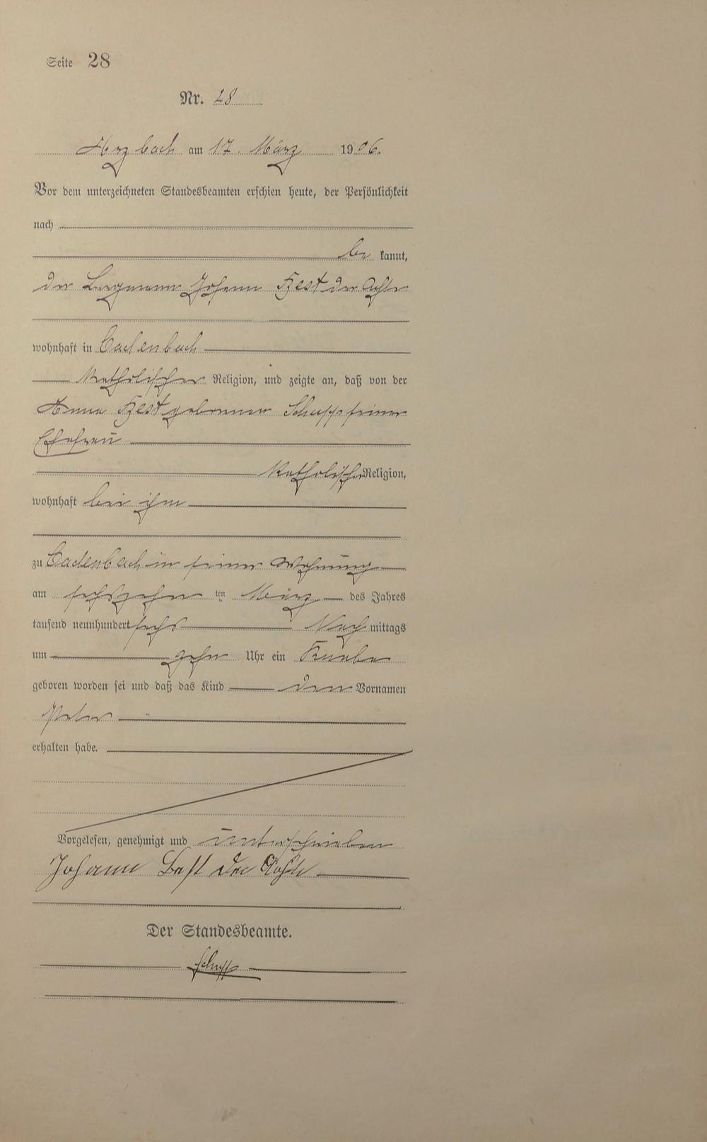 Geburtsregister 1906
