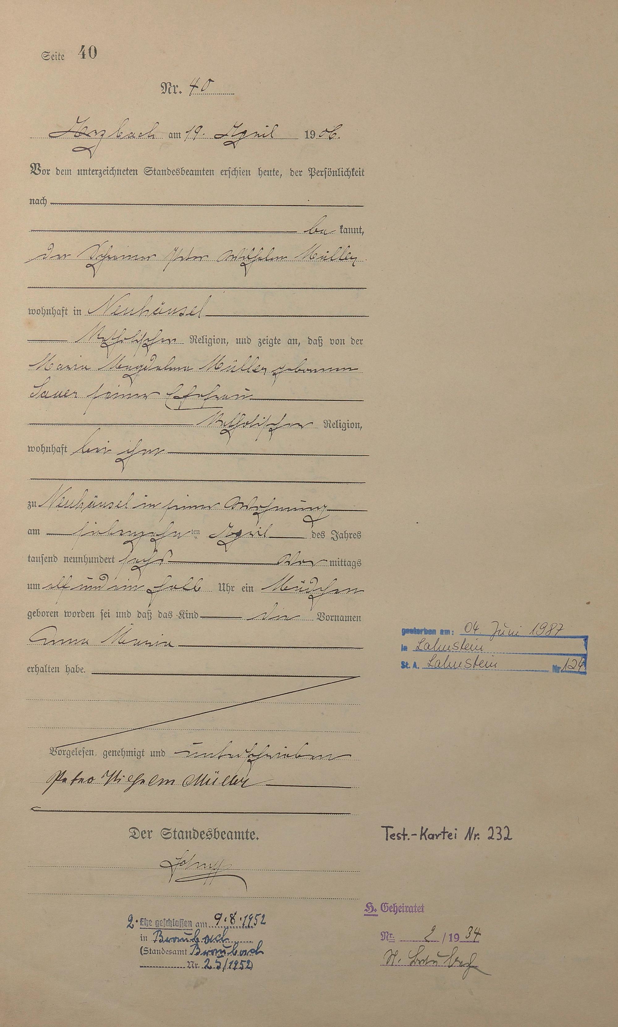 Geburtsregister 1906