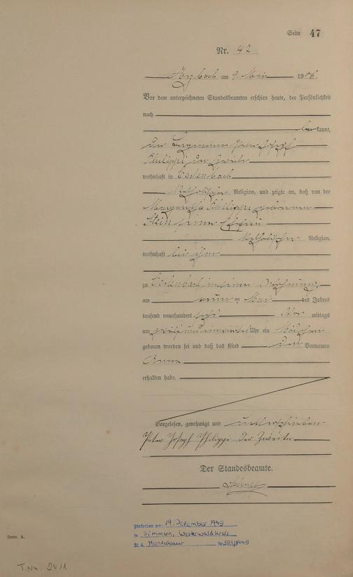Geburtsregister 1906