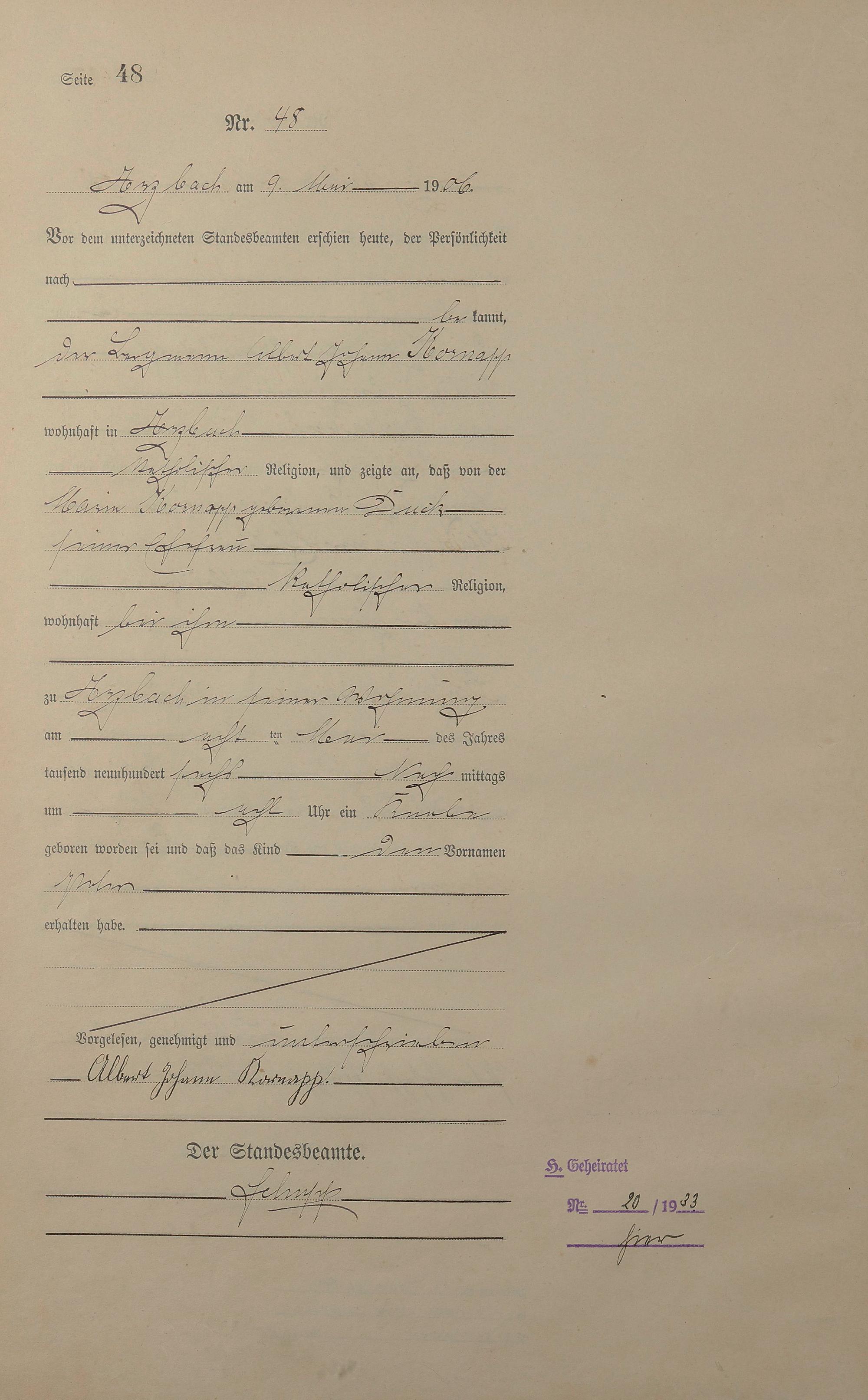 Geburtsregister 1906