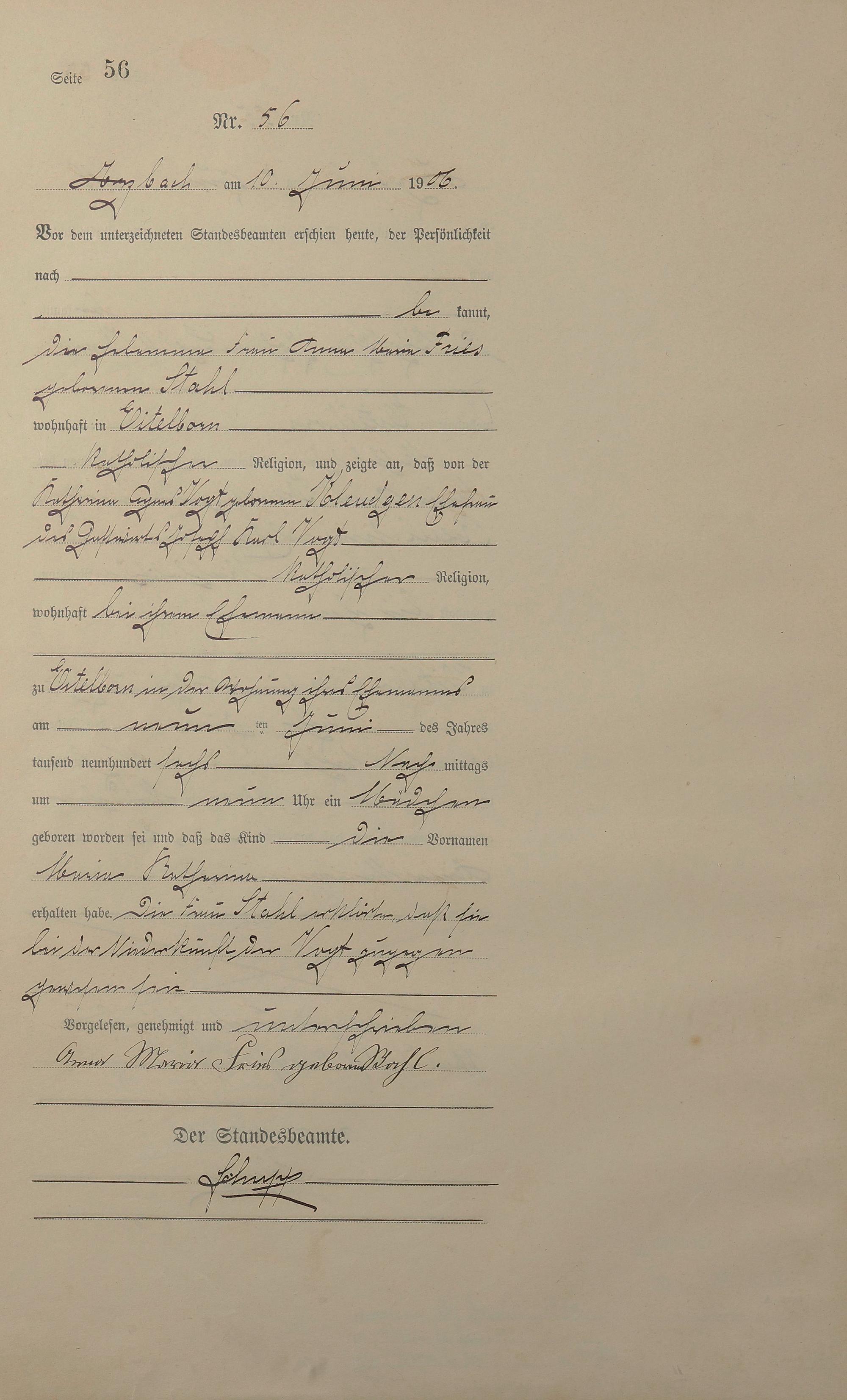 Geburtsregister 1906