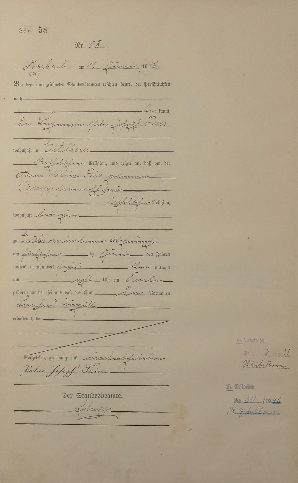 Geburtsregister 1906