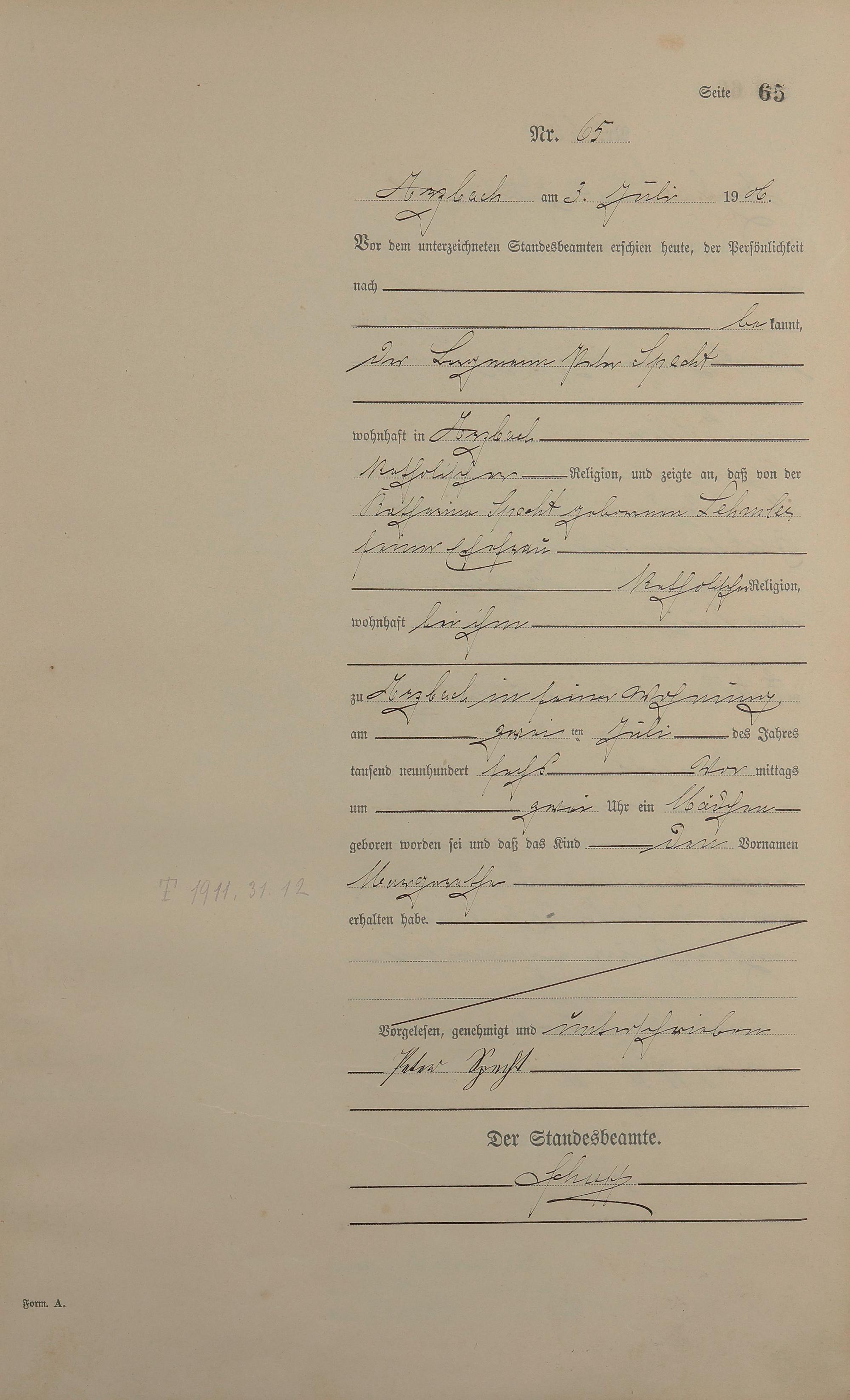 Geburtsregister 1906