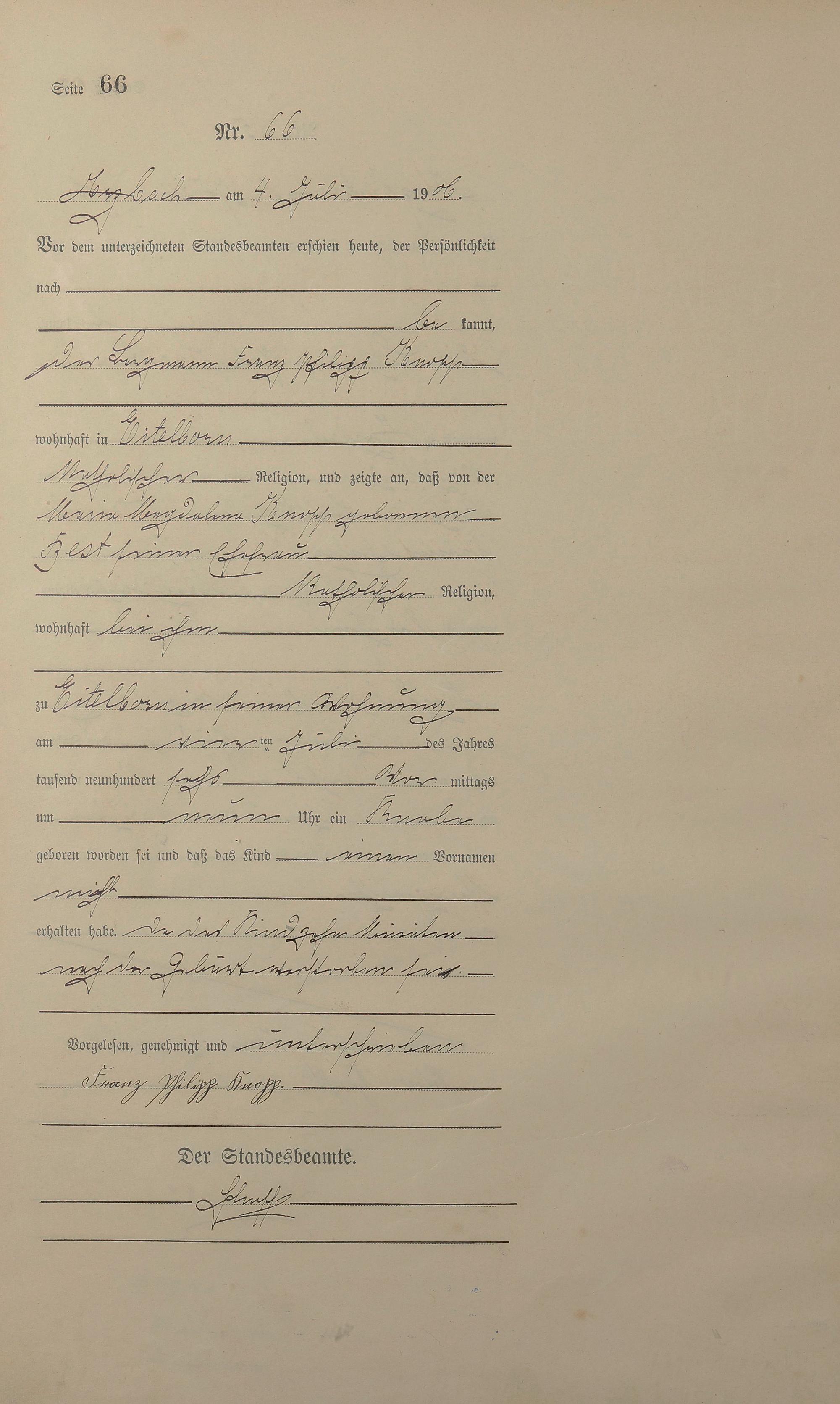 Geburtsregister 1906