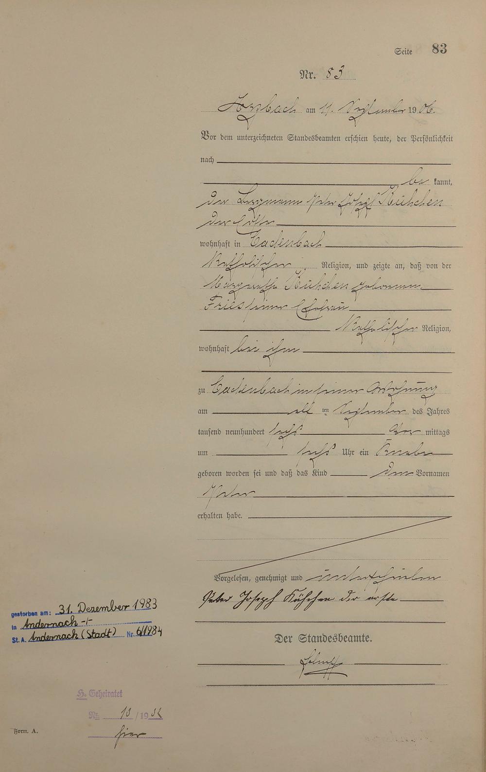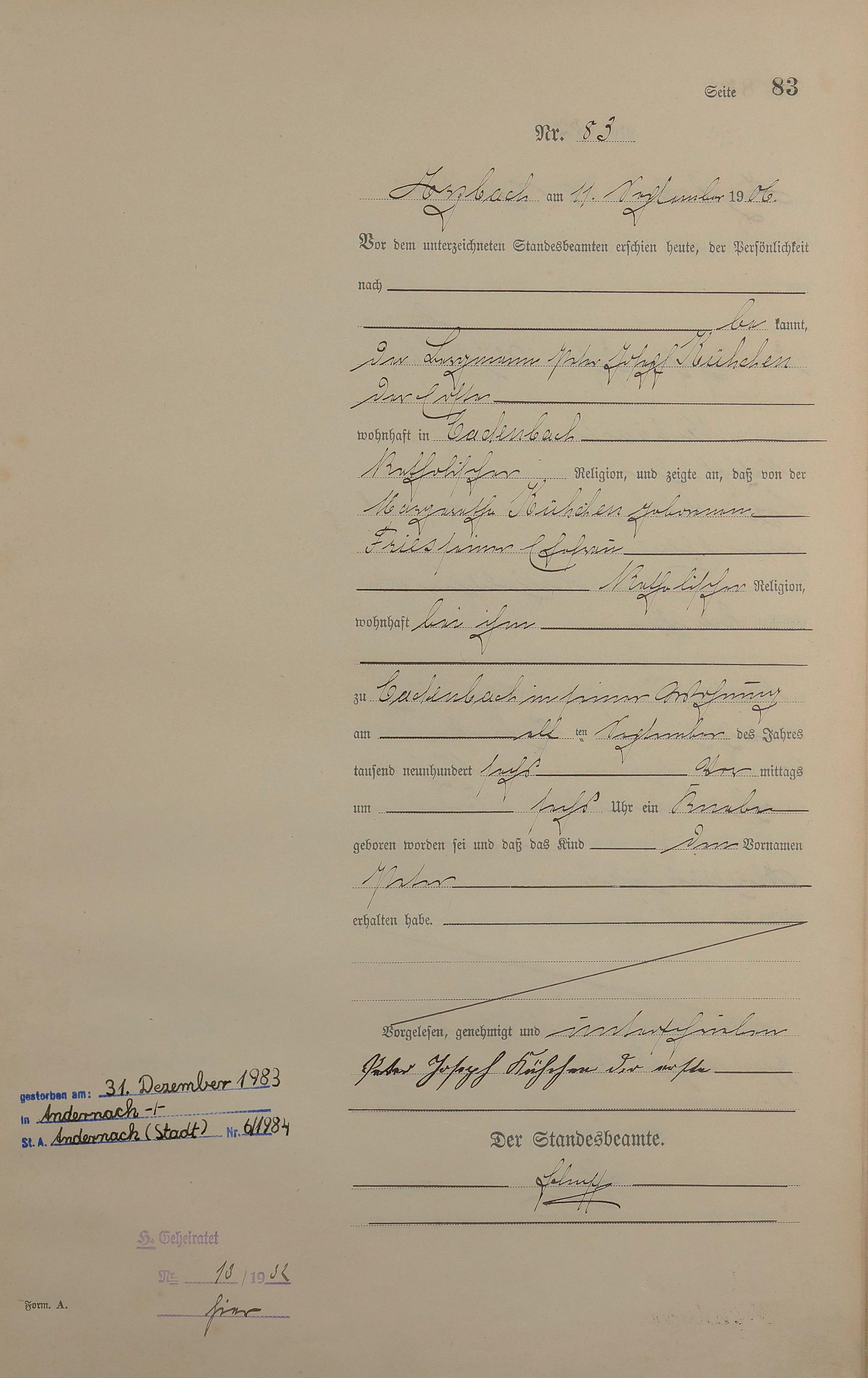 Geburtsregister 1906