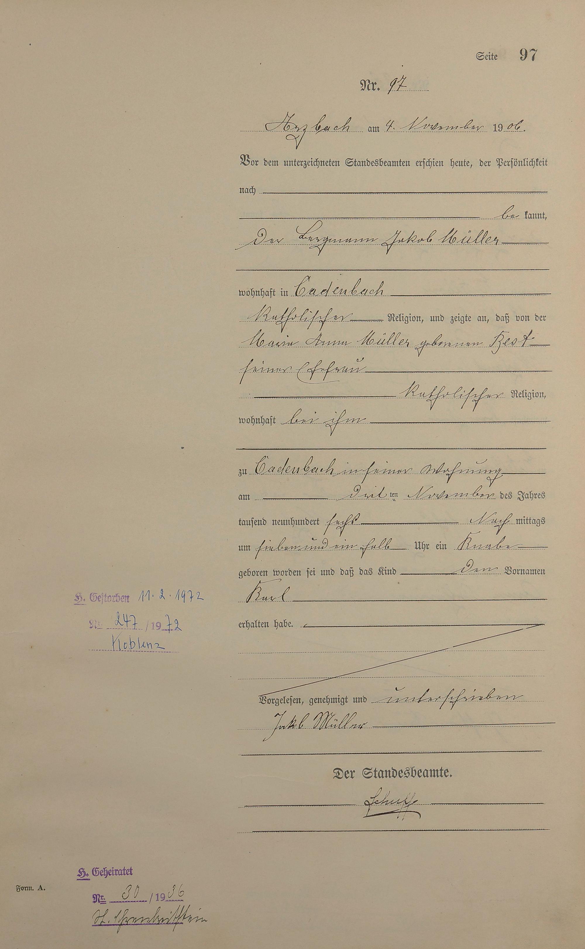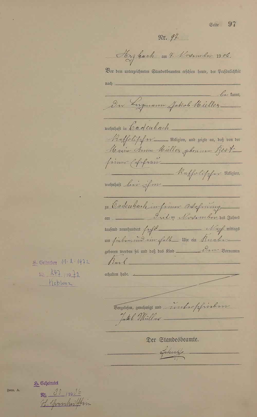 Geburtsregister 1906