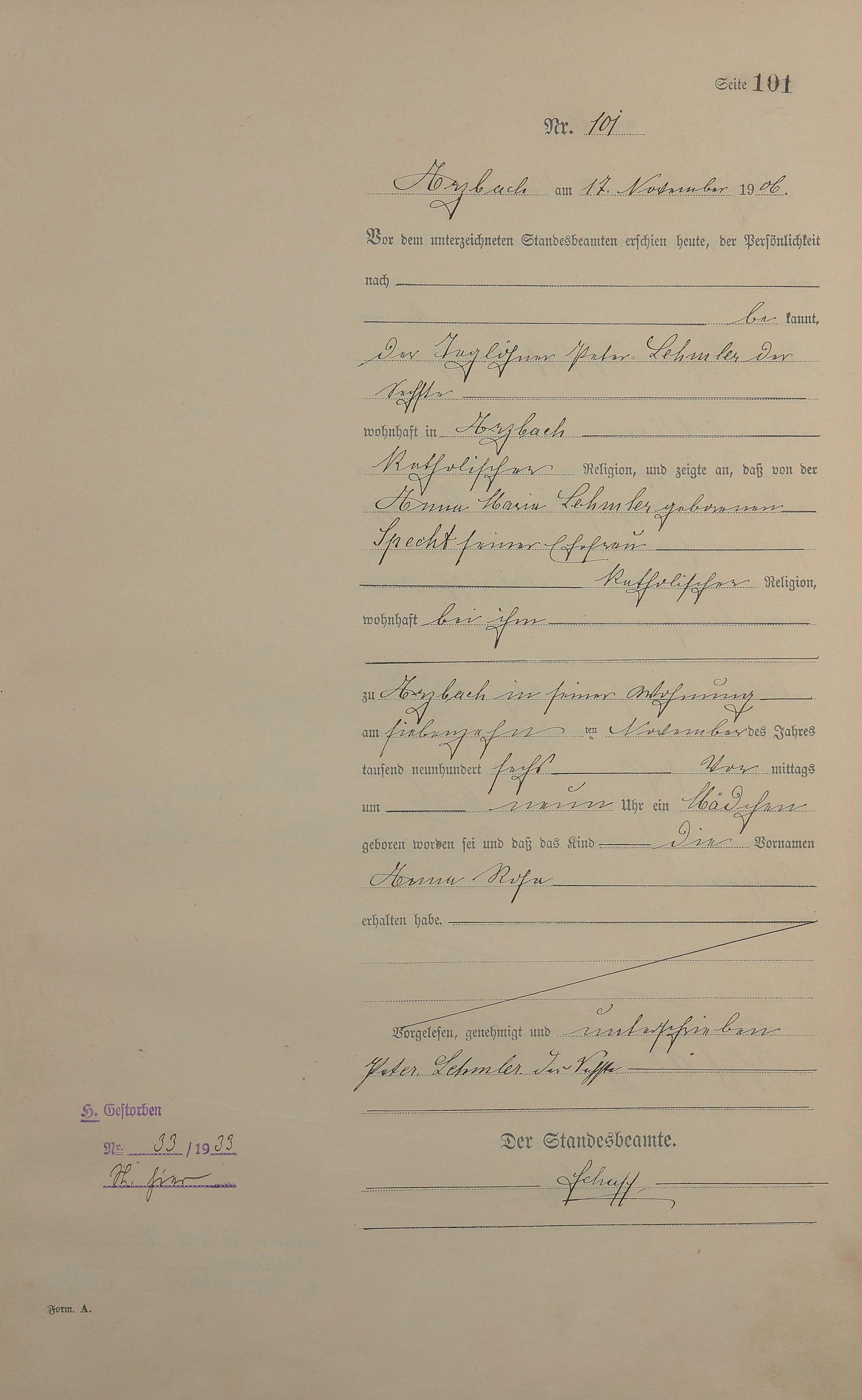 Geburtsregister 1906