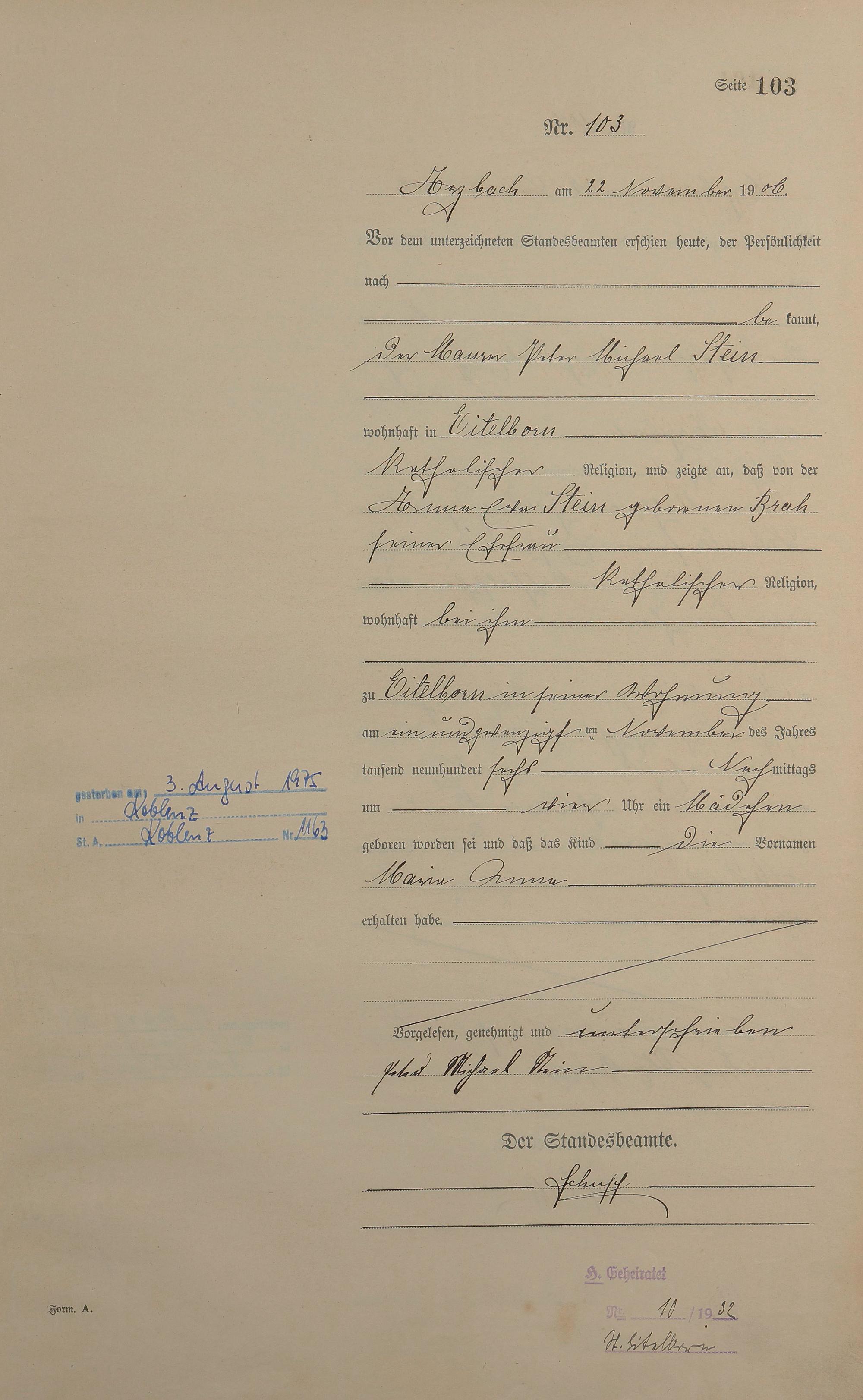 Geburtsregister 1906