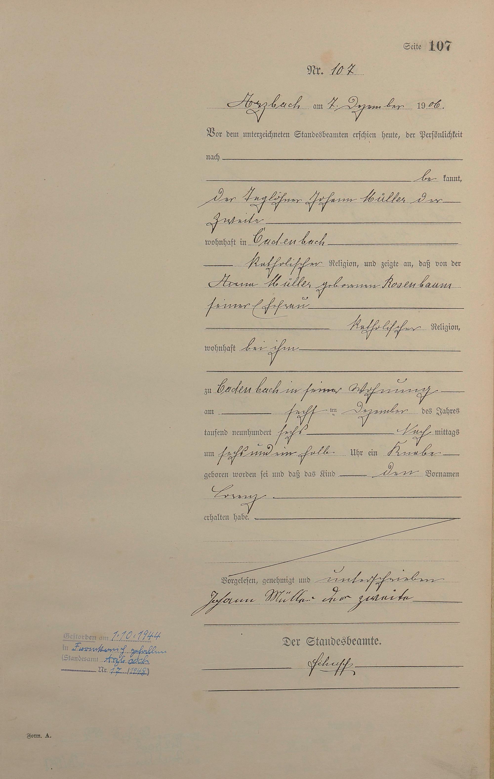 Geburtsregister 1906