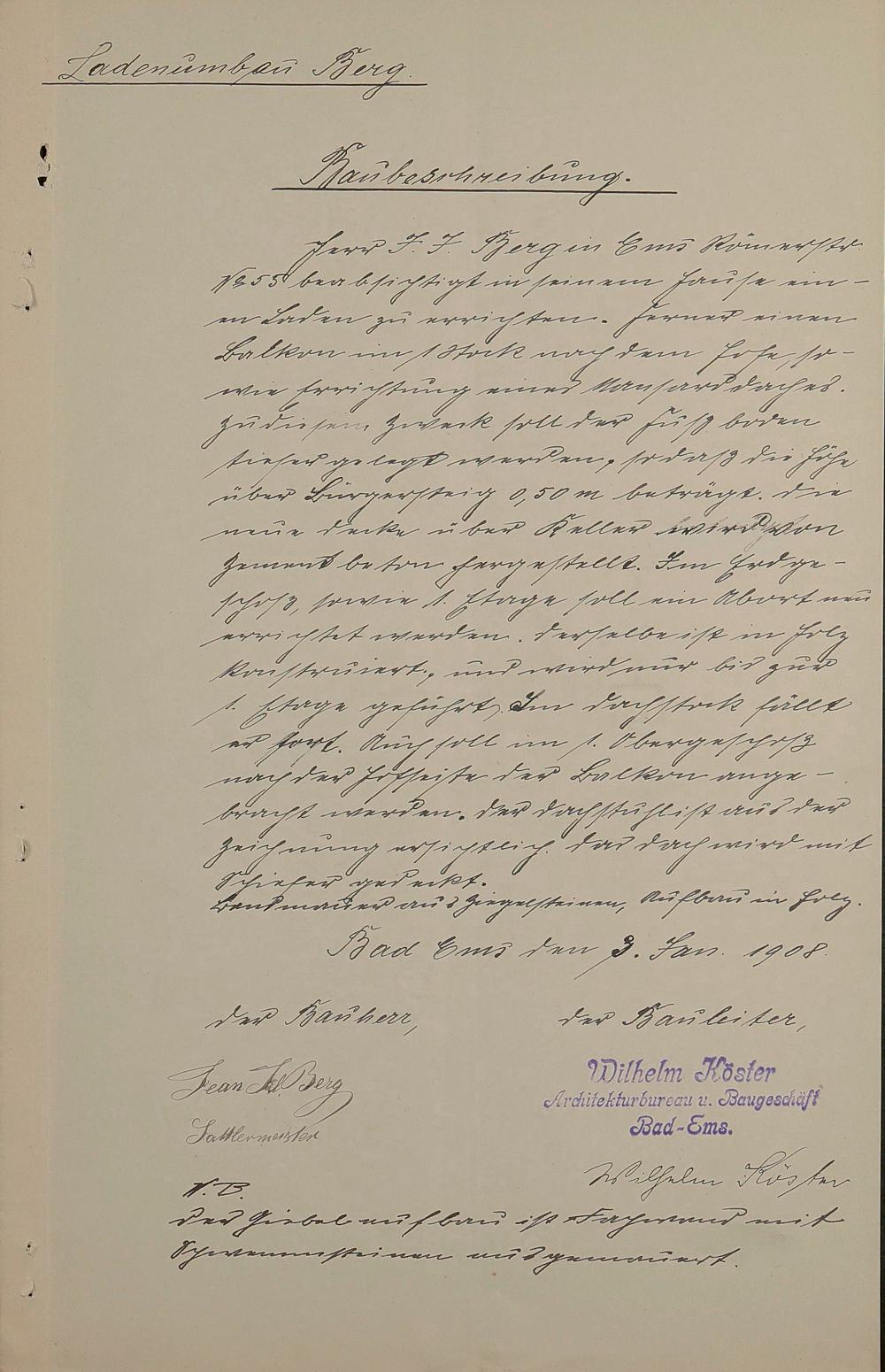 Bauangelegenheiten des Hauses "Zum Lahntal"/"Lahntal" des Johann Julius (Jean) Berg und Elise geb. Berchem/Christian Kaffine/Philipp Schulz und Maria geb. Köpper/Hans Alfred Schulz/Karl Christian Schulz/Heinrich Schulz/W. A. Henninger Bad Ems Römerstraße Nr. 55 (64) Flur 92 Nr. 8 (2, 17, 19)