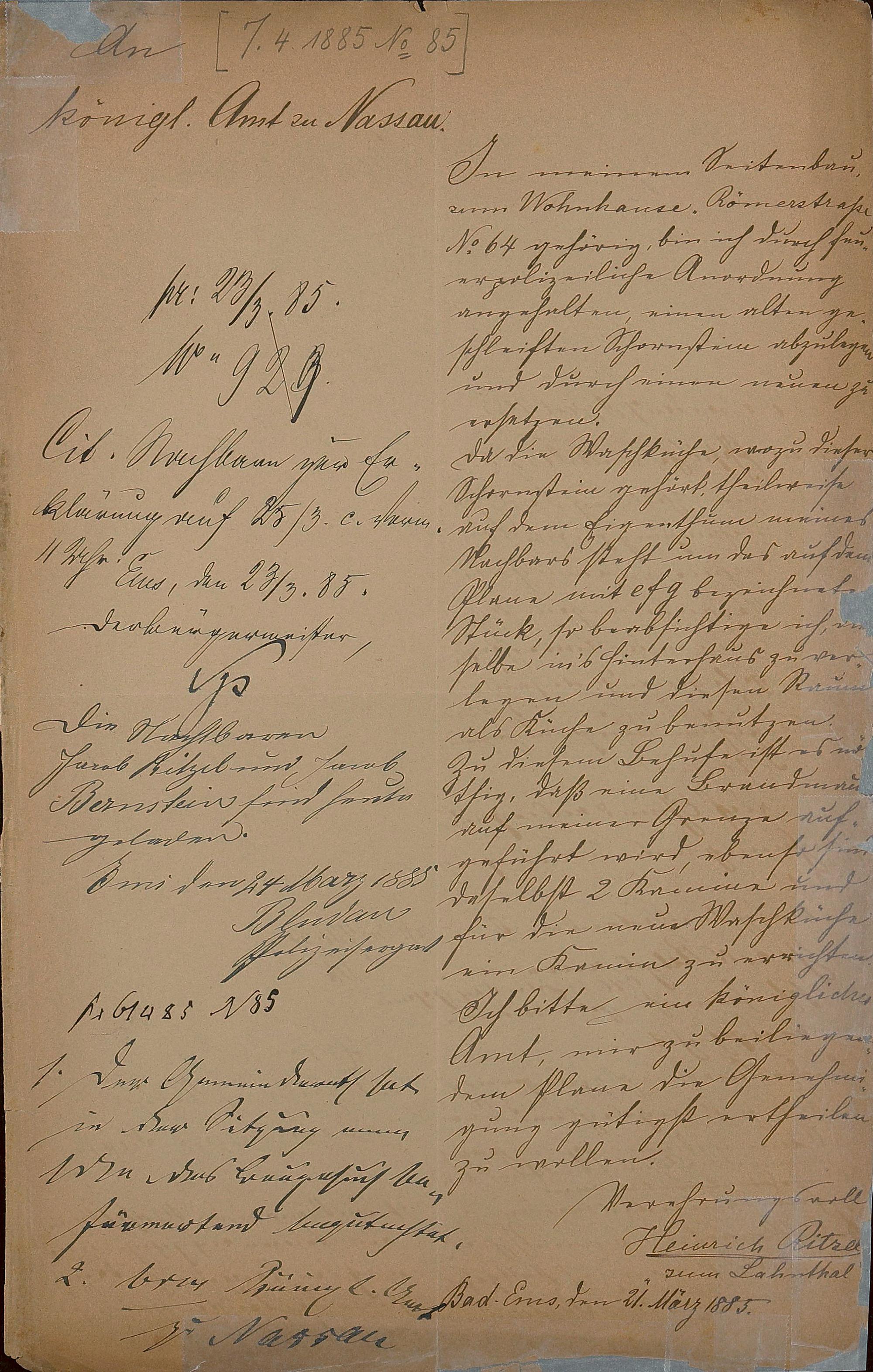 Waschküche und Kamine des Hauses "Zum Lahntal"/"Lahntal" des Heinrich Ritzel/Johann Julius (Jean) Berg und Elise geb. Berchem/Christian Kaffine/Philipp Schulz und Maria geb. Köpper/Hans Alfred Schulz/Karl Christian Schulz/Heinrich Schulz/W. A. Henninger Bad Ems Römerstraße Nr. 55 (64) Flur 92 Nr. 8 (2, 17, 19)