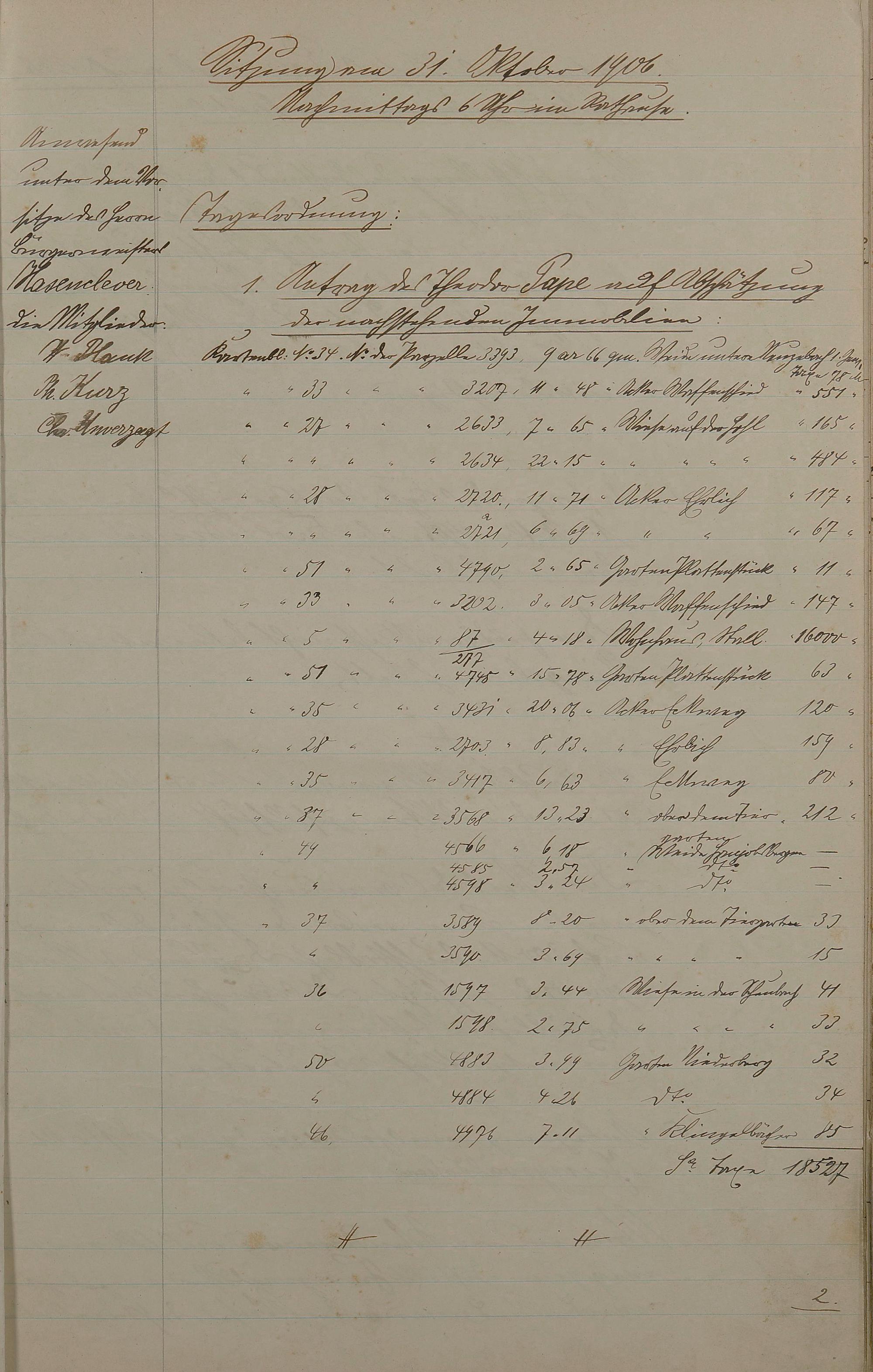 Protokollbuch des Feldgerichtes/Schätzungsamtes 31. Okt. 1906 - 28. Mai 1912