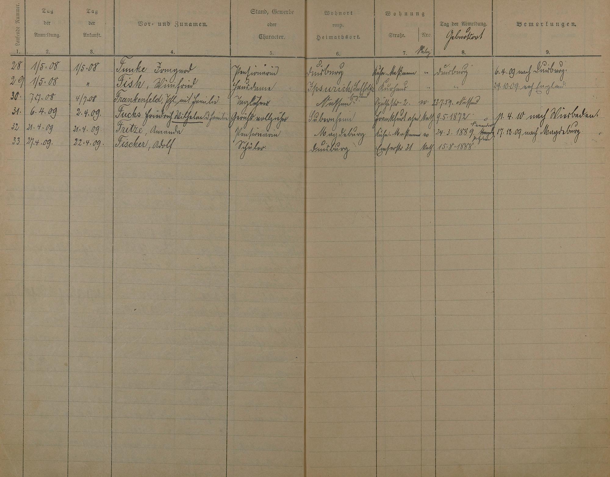 Melderegister 1902 - 1909 A - Z