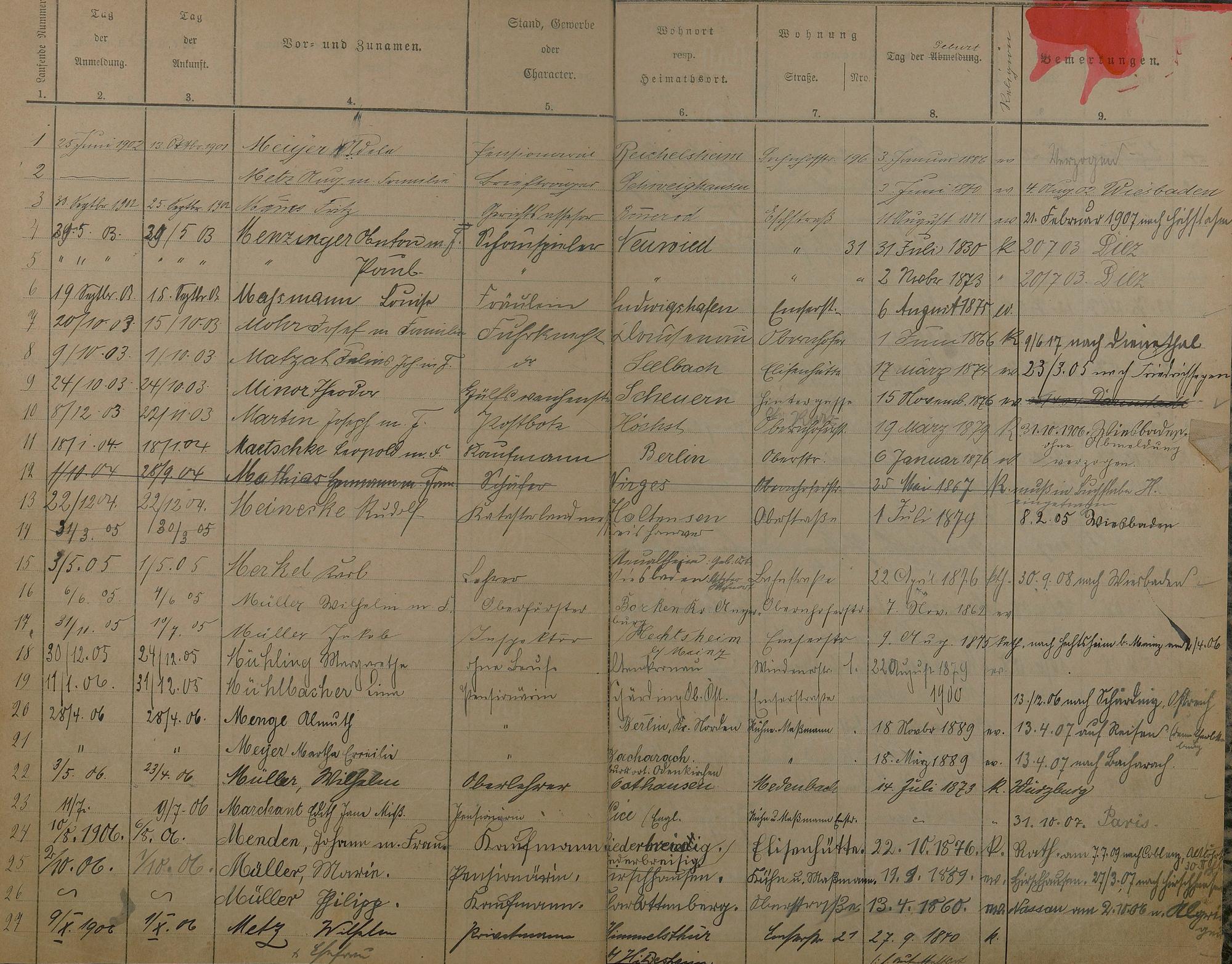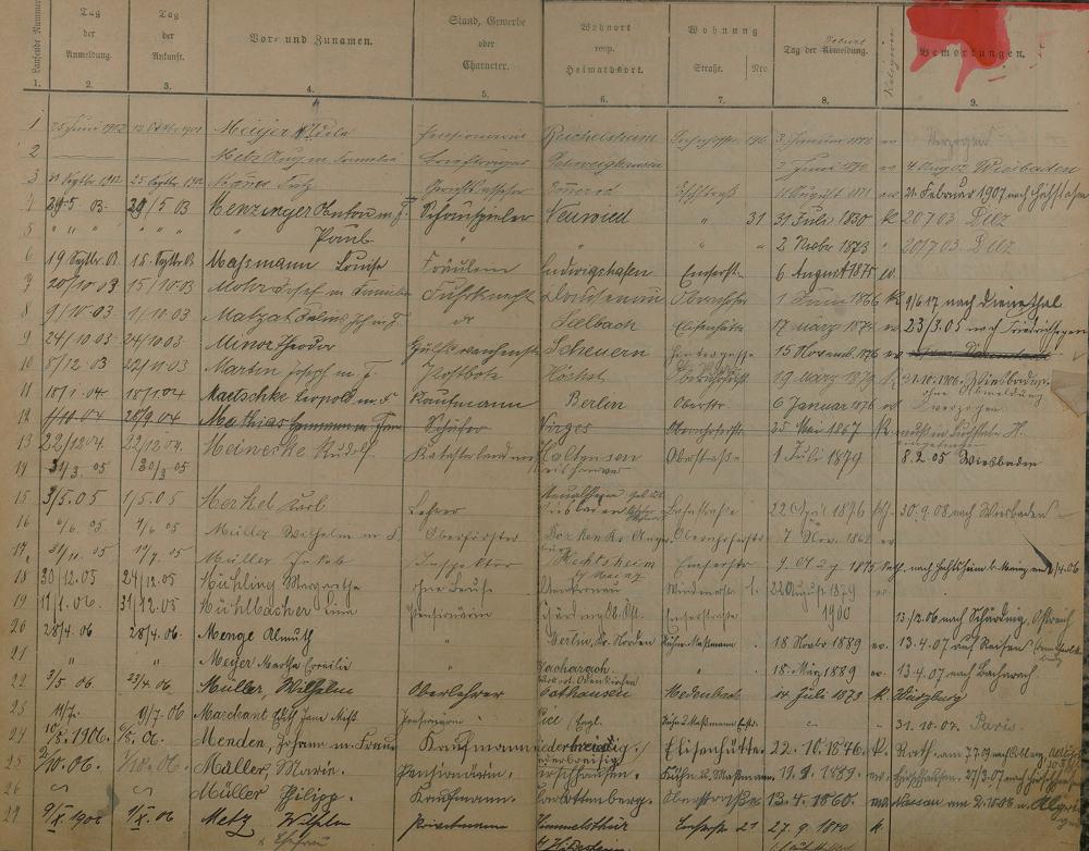 Melderegister 1902 - 1909 A - Z