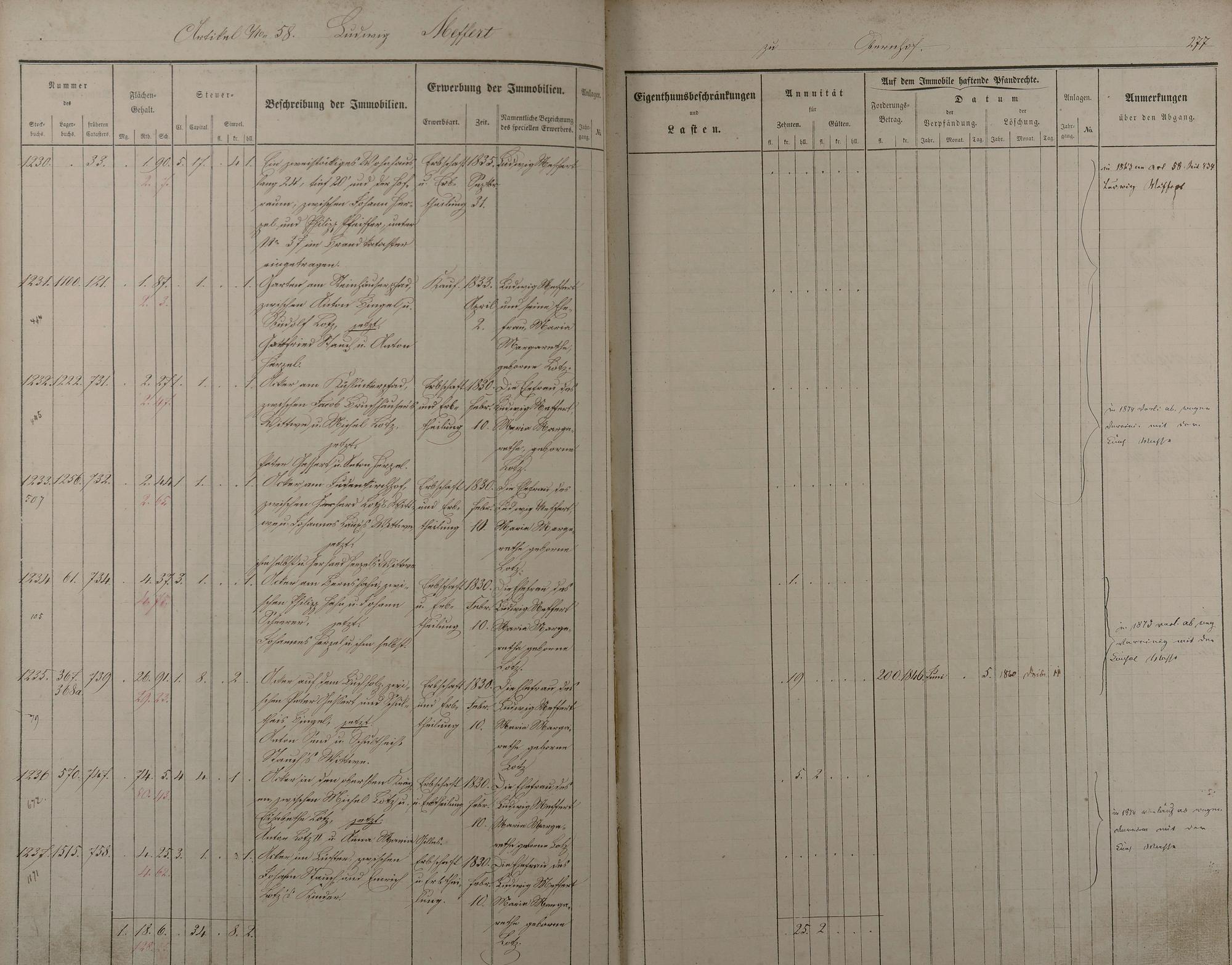 22: Stockbuch Artikel 49 - 151Artikel 49 - 91 Besitzer L - W aus Obernhof Artikel...