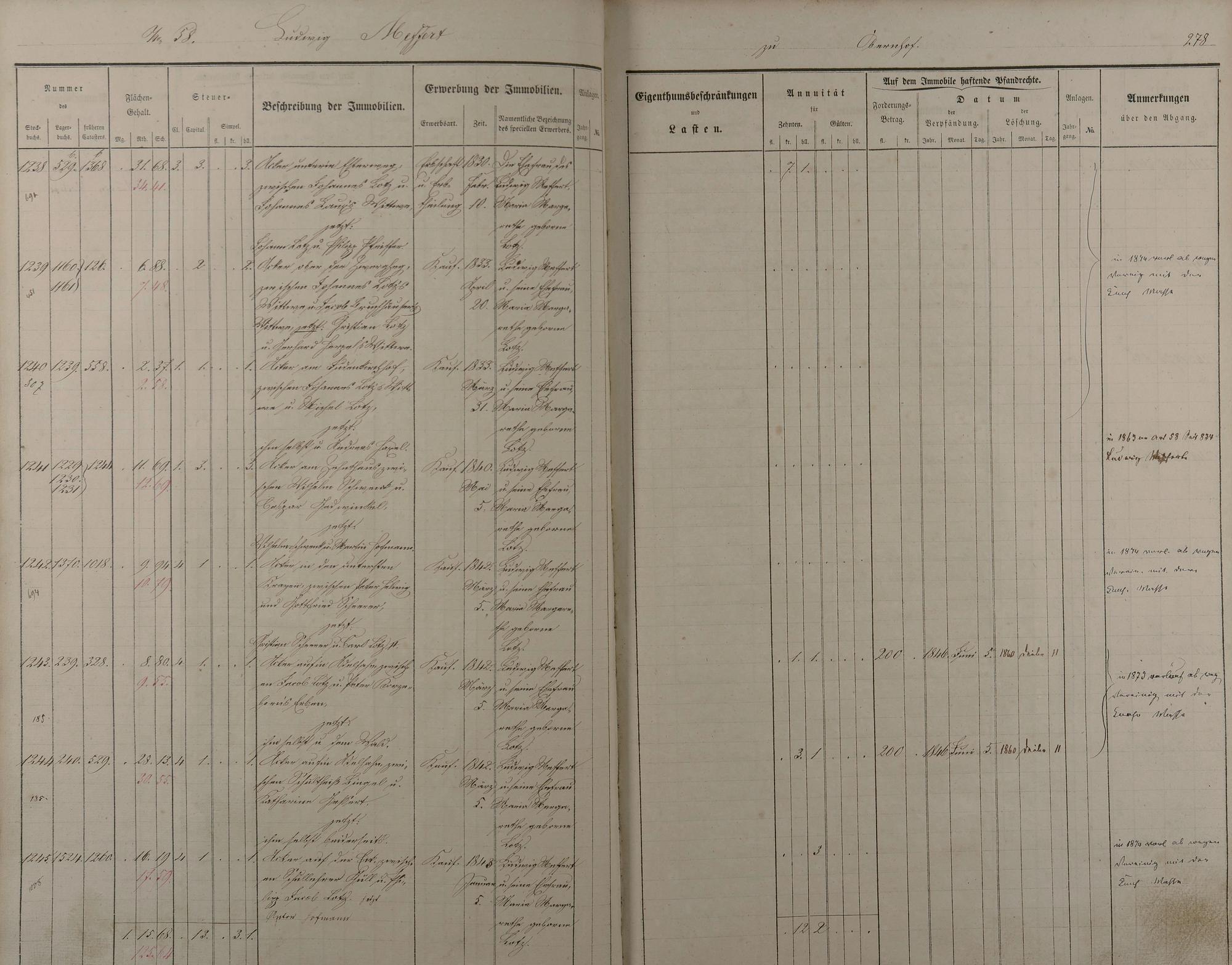 22: Stockbuch Artikel 49 - 151Artikel 49 - 91 Besitzer L - W aus Obernhof Artikel...