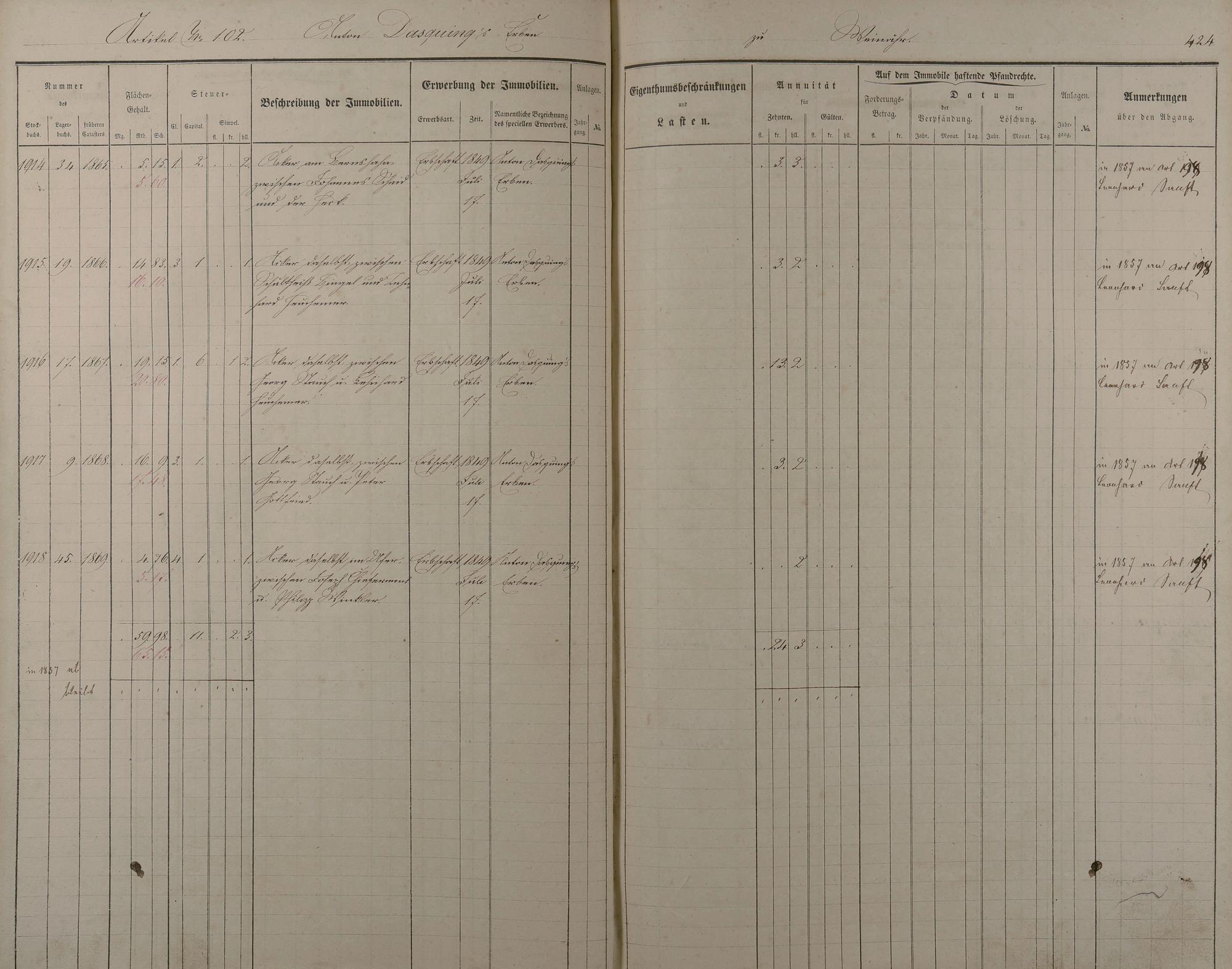 22: Stockbuch Artikel 49 - 151Artikel 49 - 91 Besitzer L - W aus Obernhof Artikel...