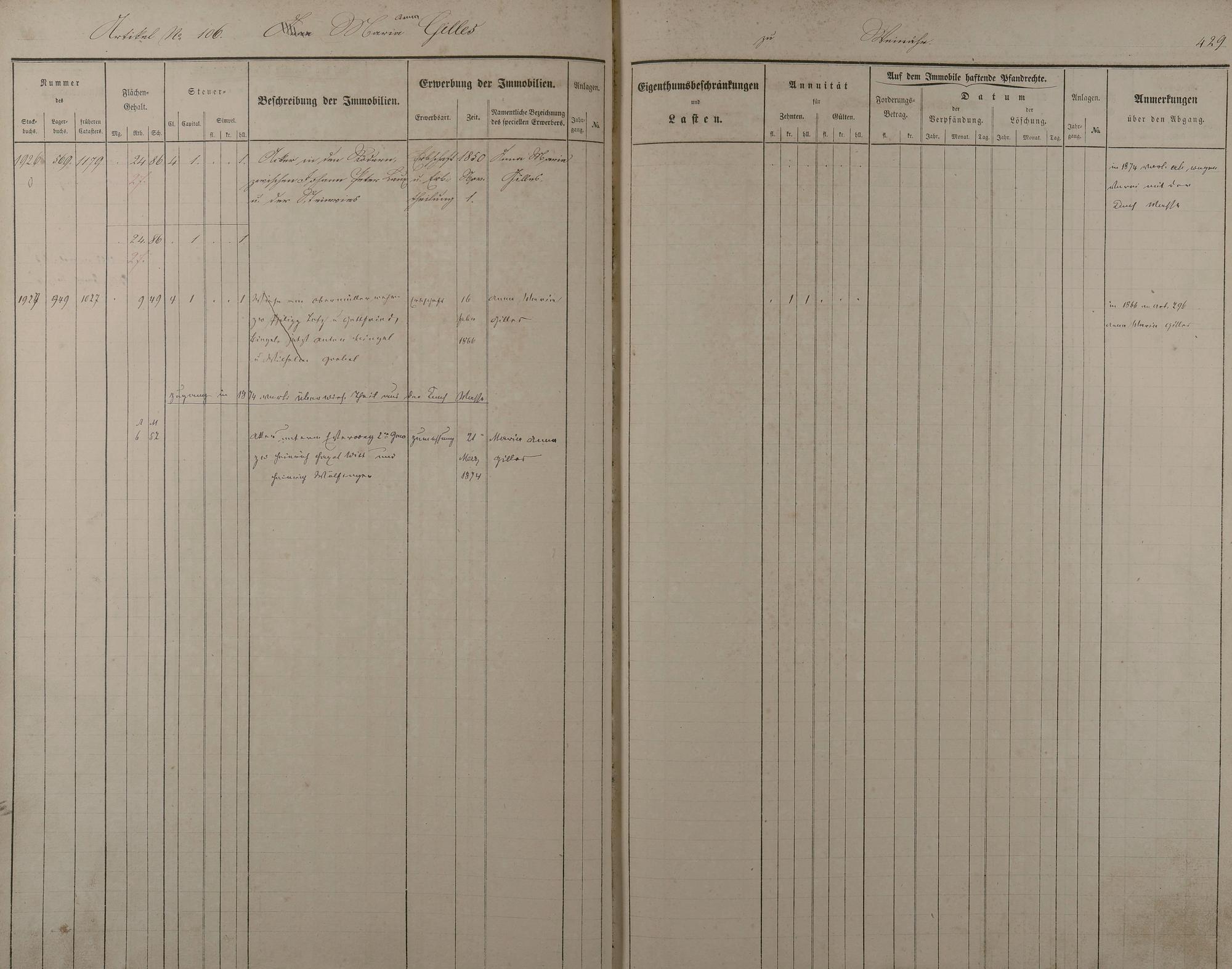 22: Stockbuch Artikel 49 - 151Artikel 49 - 91 Besitzer L - W aus Obernhof Artikel...