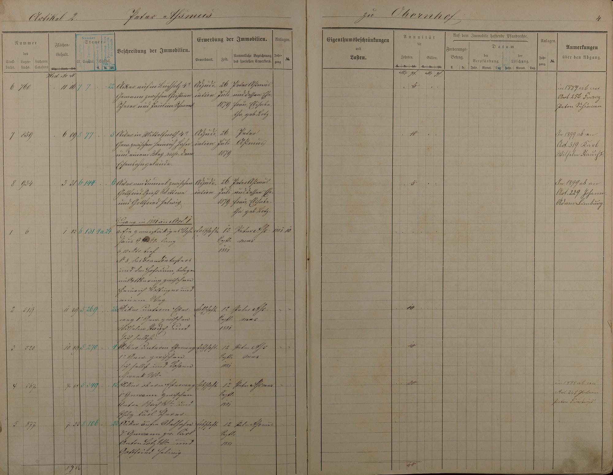 Stockbuch Artikel 1 - 73 - Besitzer A - P aus Obernhof