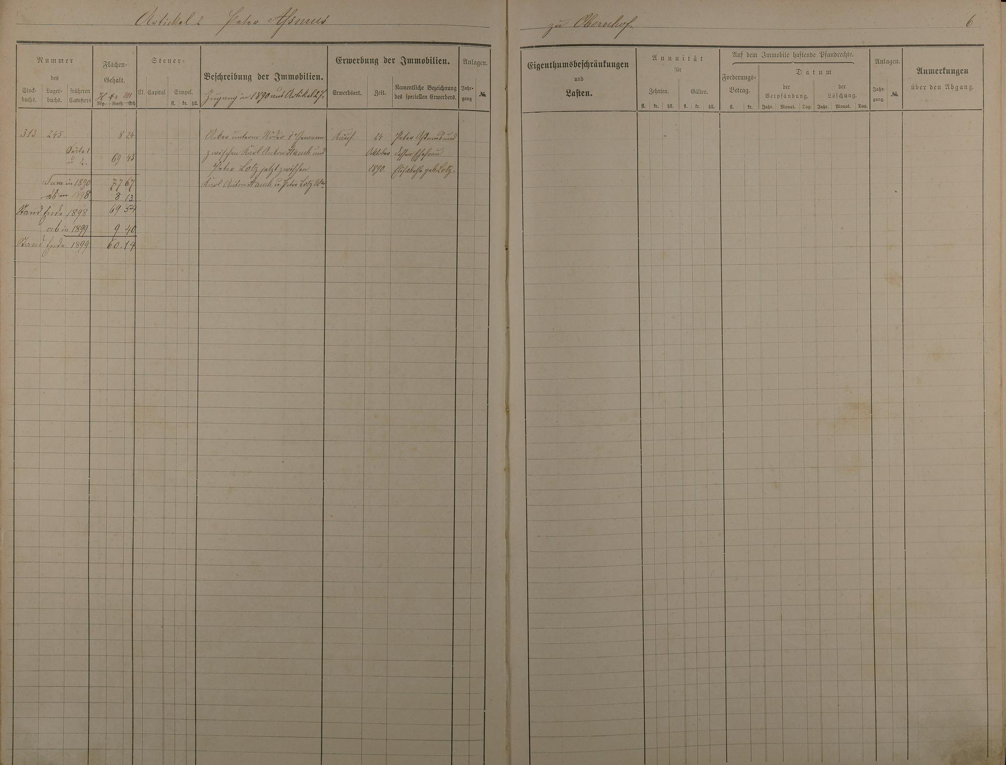 Stockbuch Artikel 1 - 73 - Besitzer A - P aus Obernhof
