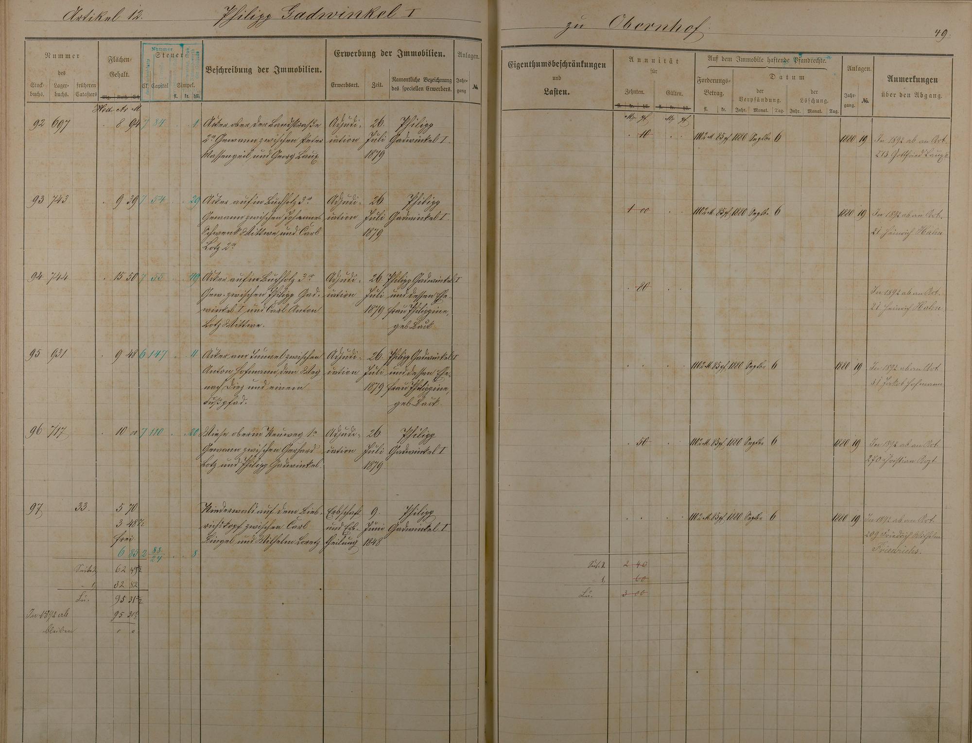 Stockbuch Artikel 1 - 73 - Besitzer A - P aus Obernhof