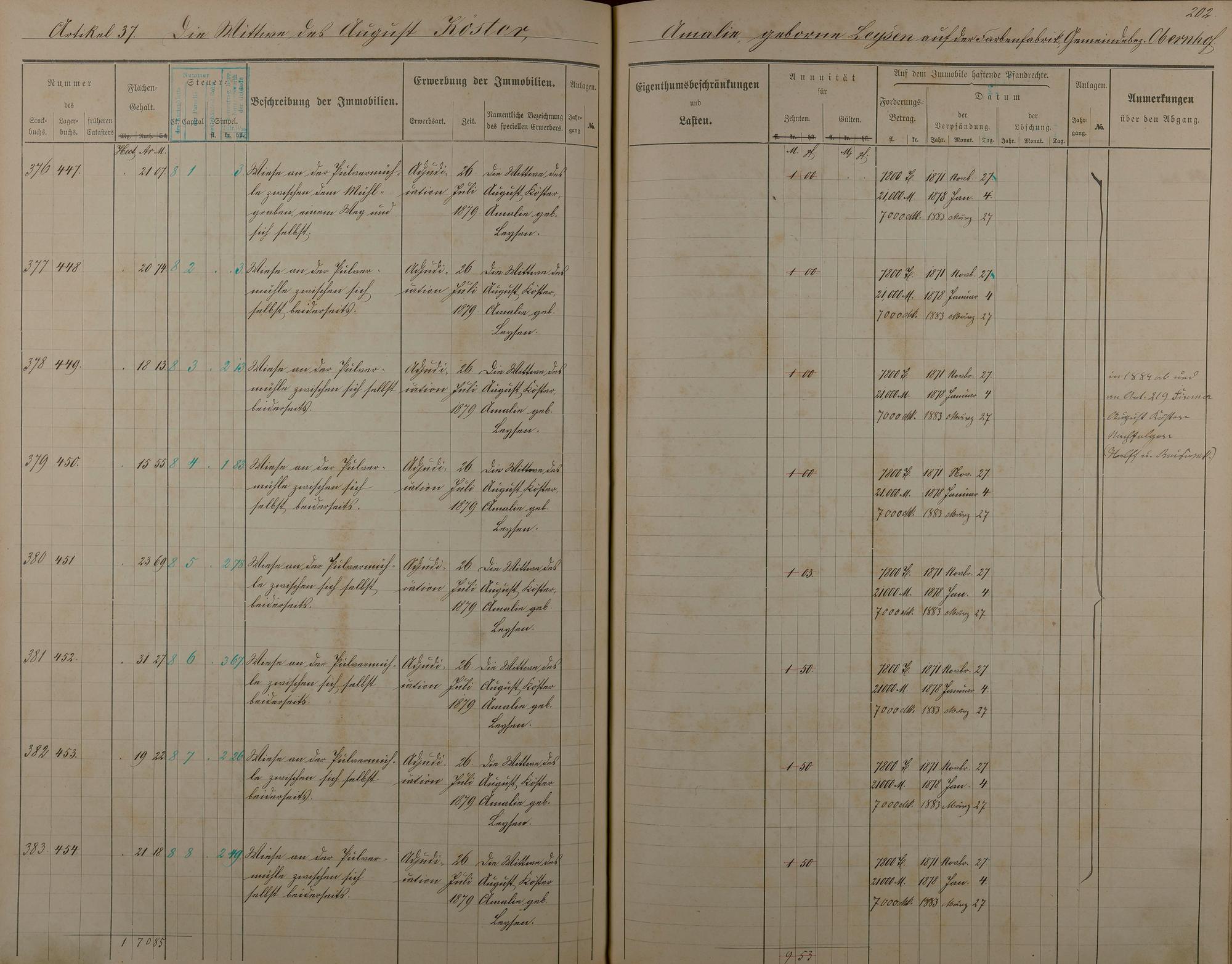 Stockbuch Artikel 1 - 73 - Besitzer A - P aus Obernhof