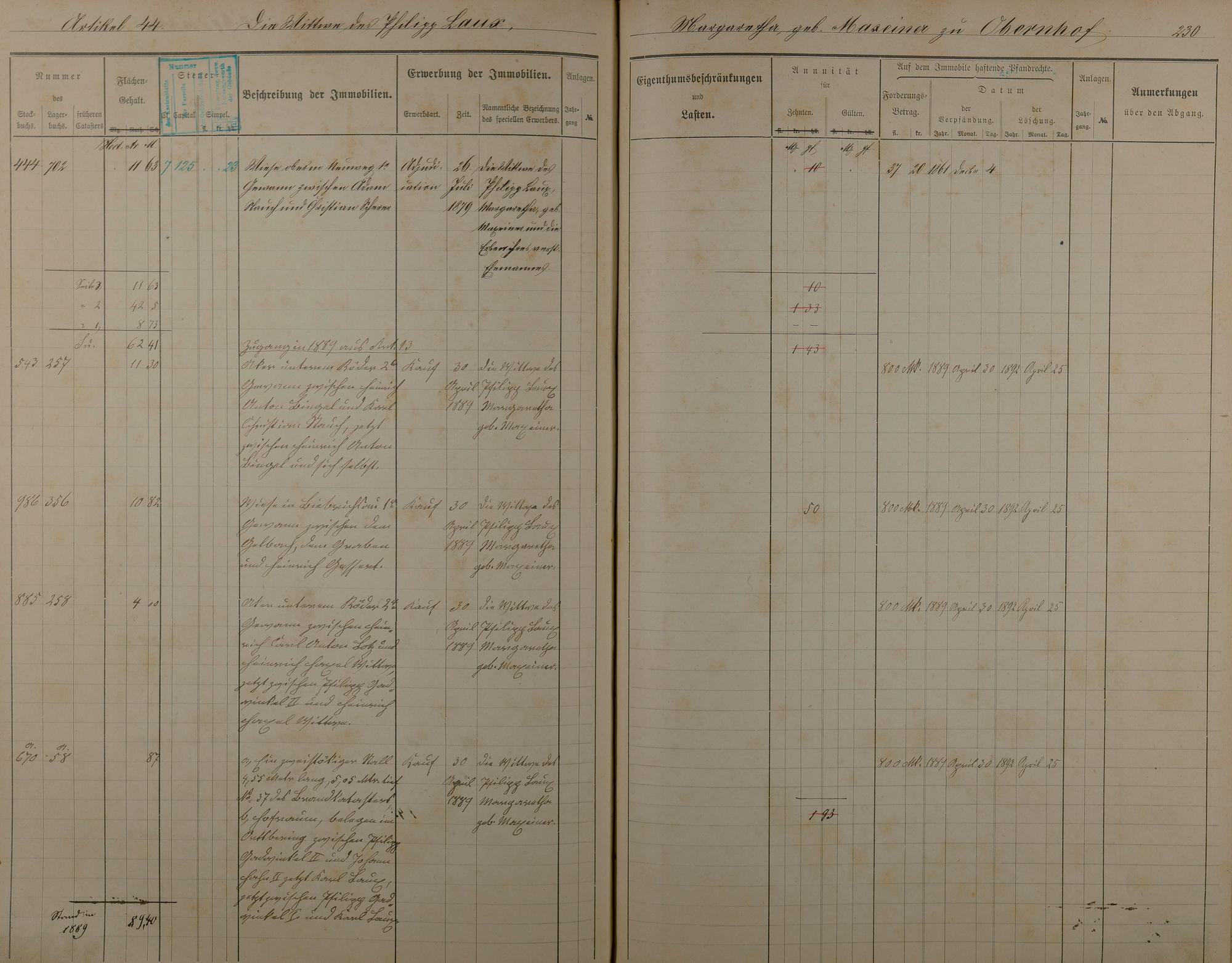 Stockbuch Artikel 1 - 73 - Besitzer A - P aus Obernhof