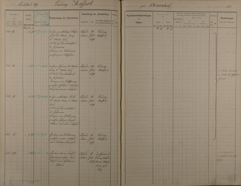 Stockbuch Artikel 1 - 73 - Besitzer A - P aus Obernhof