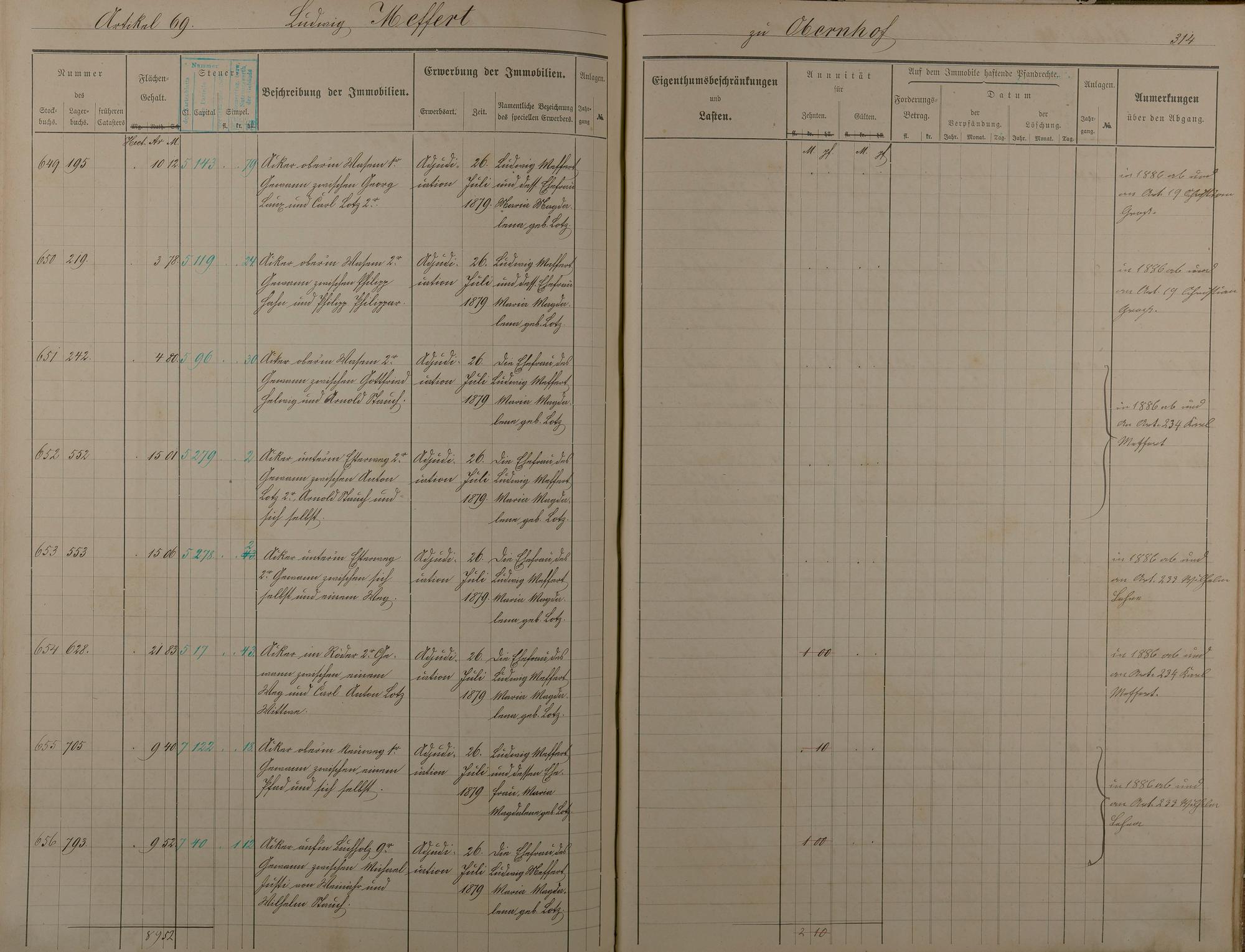 26: Stockbuch Artikel 1 - 73 - Besitzer A - P aus Obernhof