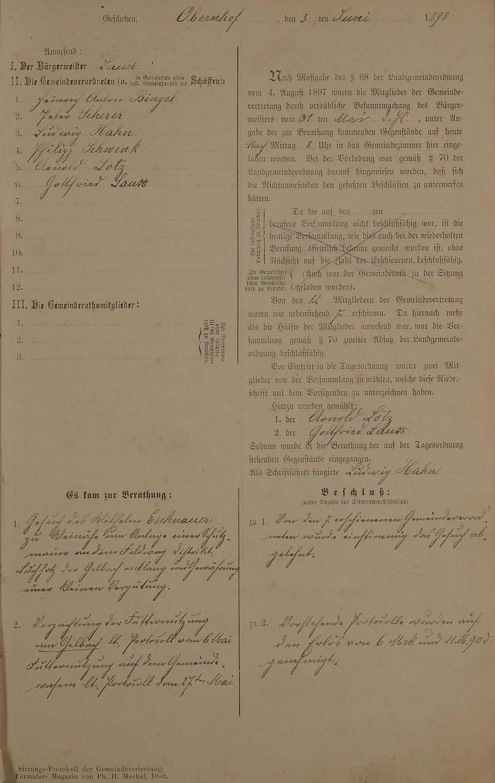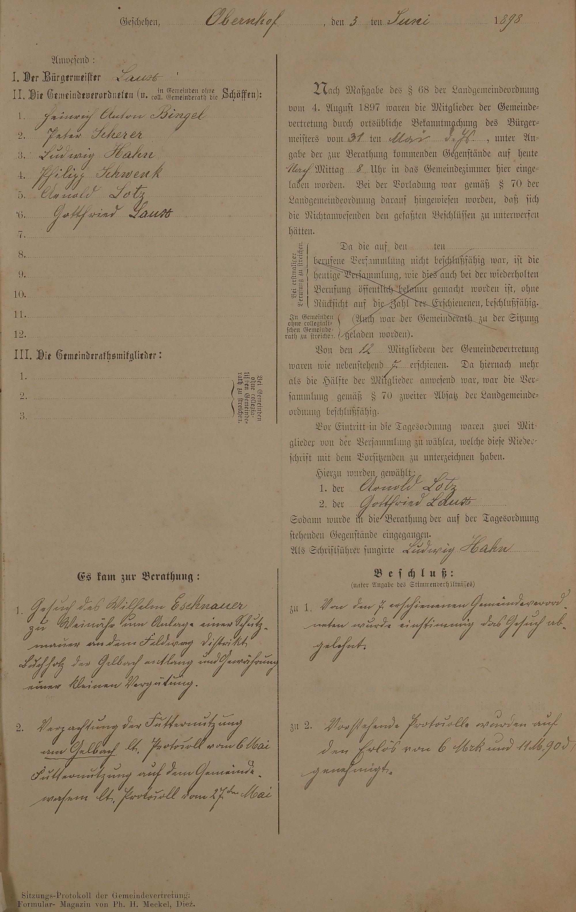 Gemeinderatsprotokolle 3. Juni 1898 - 28. Sept. 1902