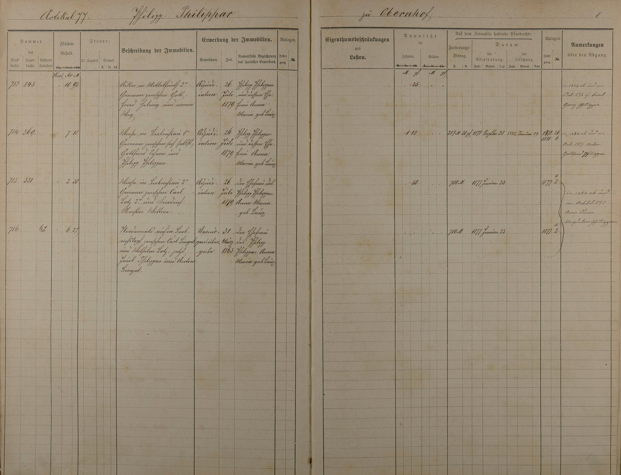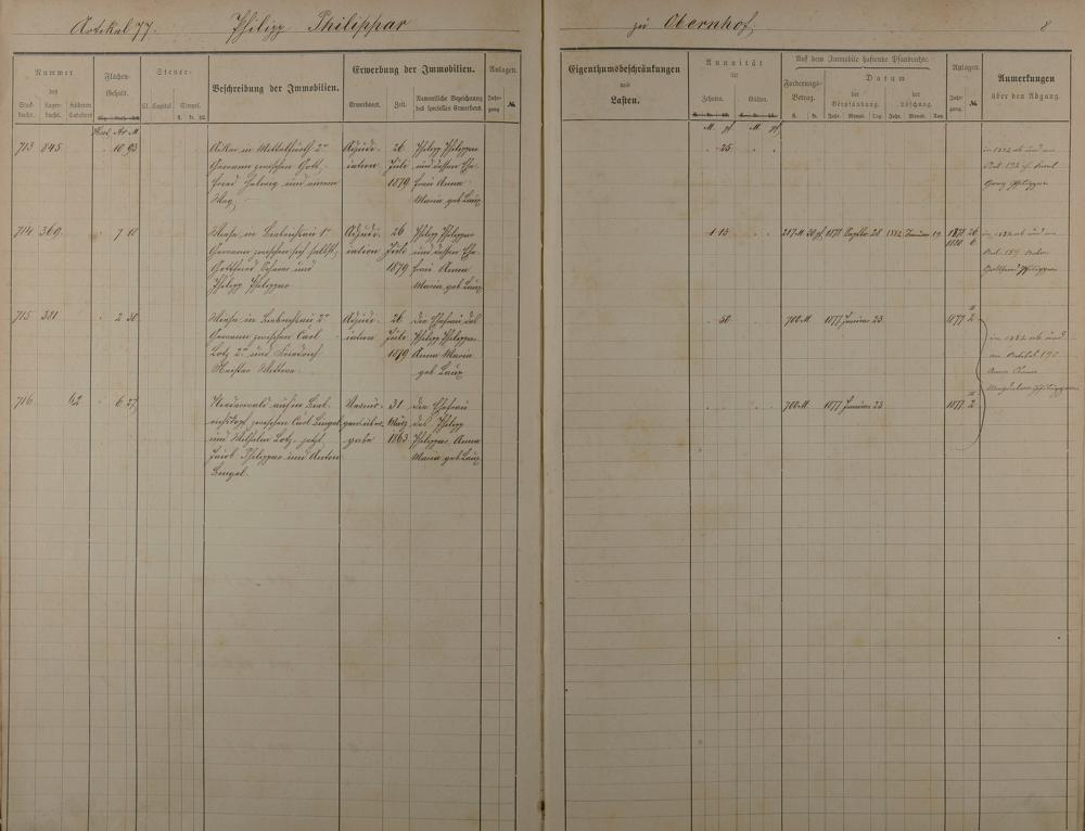 Stockbuch Artikel 74 - 223 - Besitzer P - Z aus Obernhof und Orte A -außerhalb