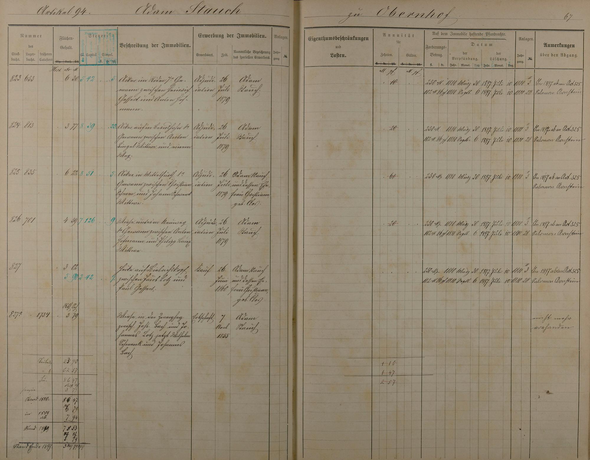 Stockbuch Artikel 74 - 223 - Besitzer P - Z aus Obernhof und Orte A -außerhalb