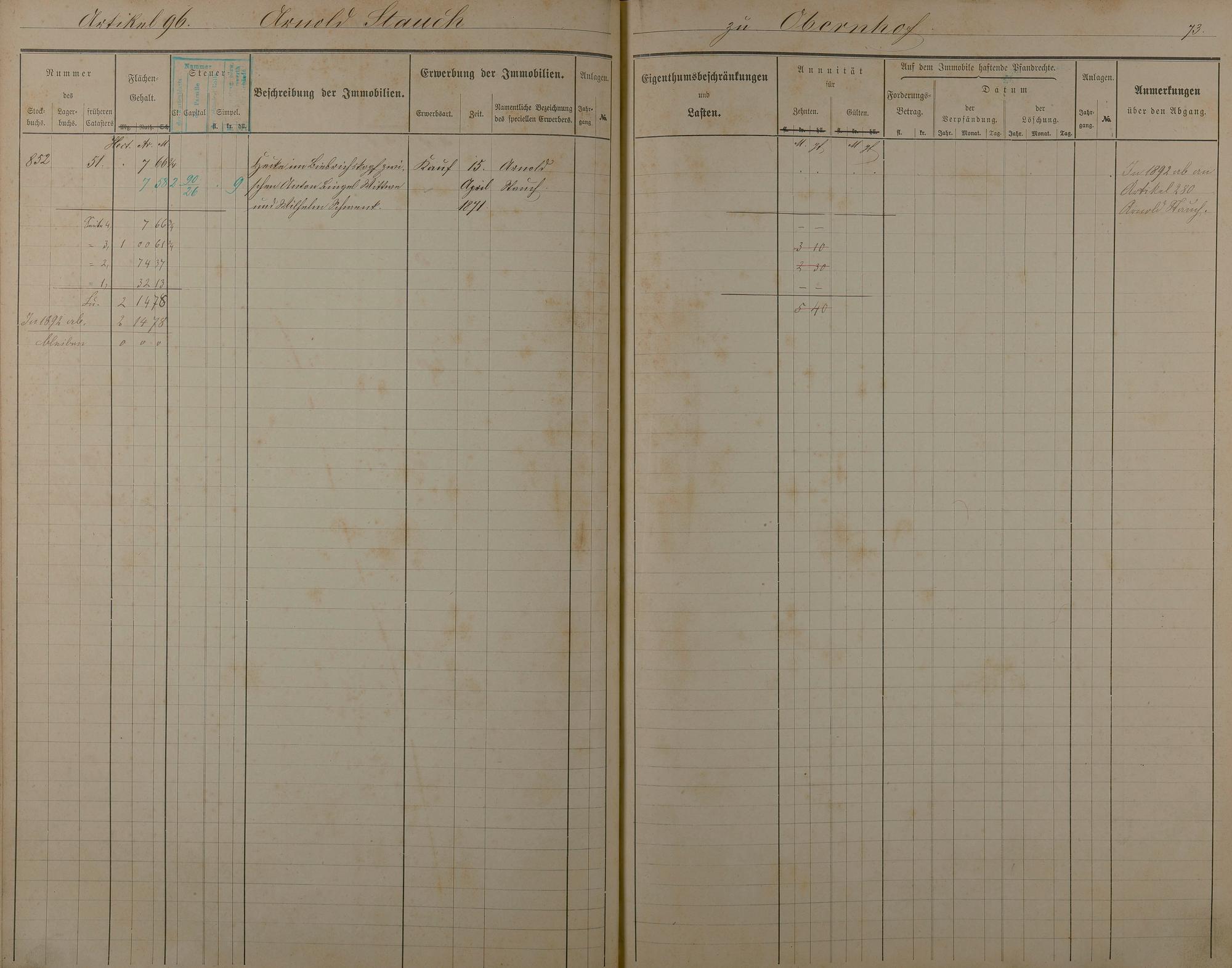 Stockbuch Artikel 74 - 223 - Besitzer P - Z aus Obernhof und Orte A -außerhalb