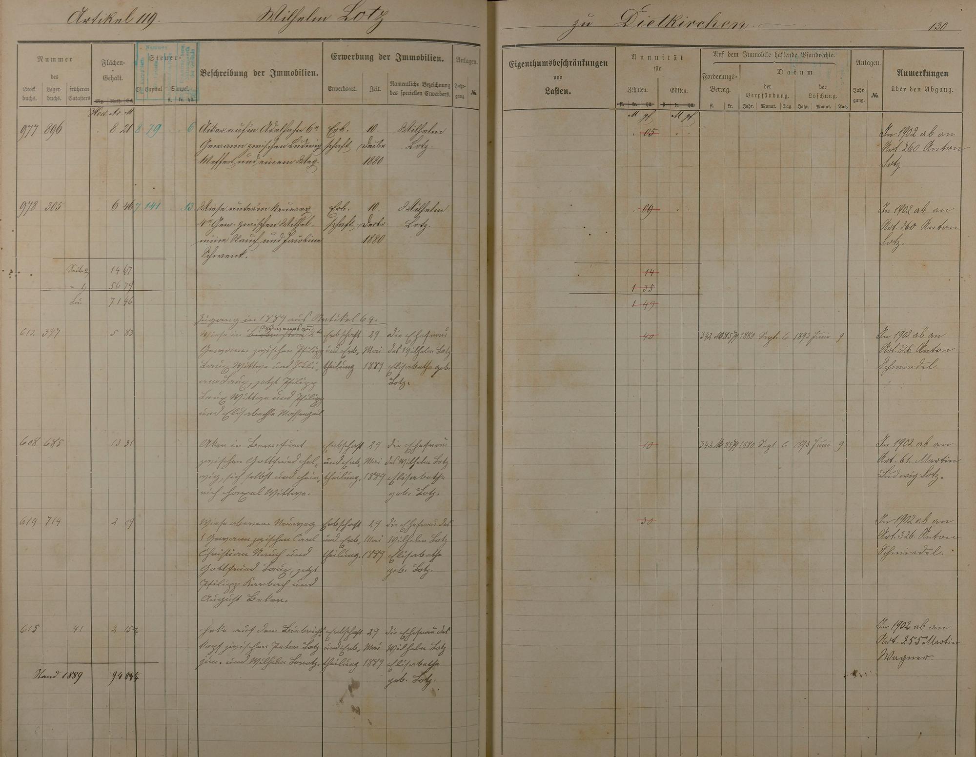 Stockbuch Artikel 74 - 223 - Besitzer P - Z aus Obernhof und Orte A -außerhalb